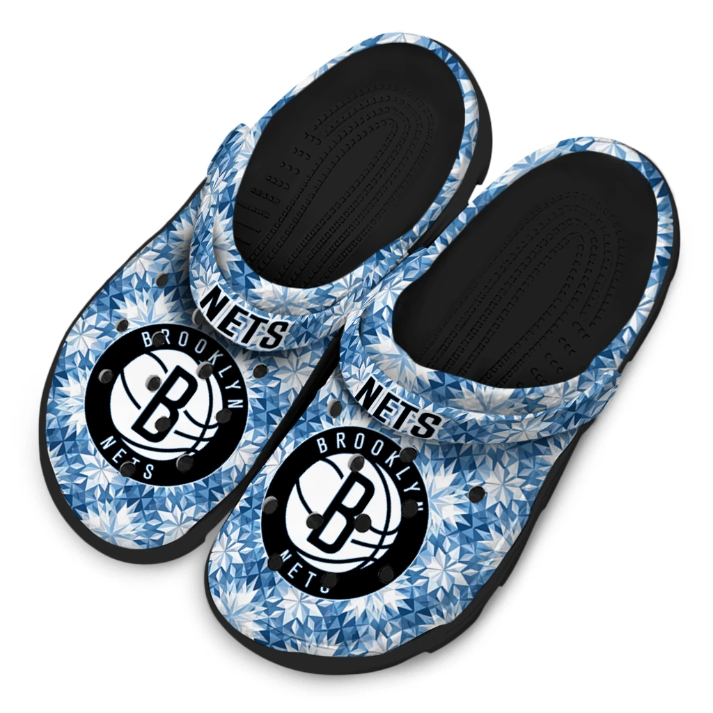 Customized Brooklyn Nets Snowflake Mosaic Clogs