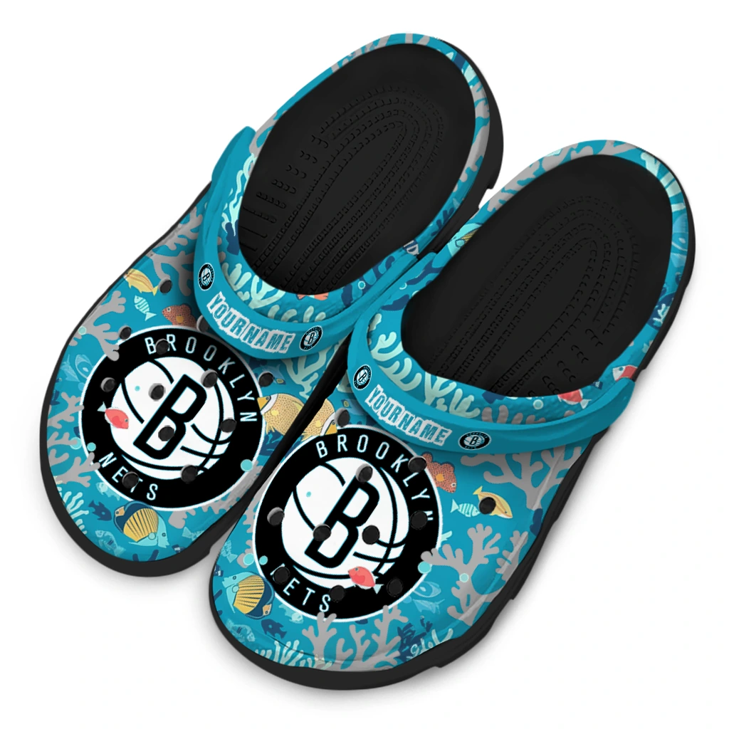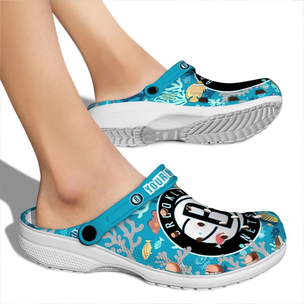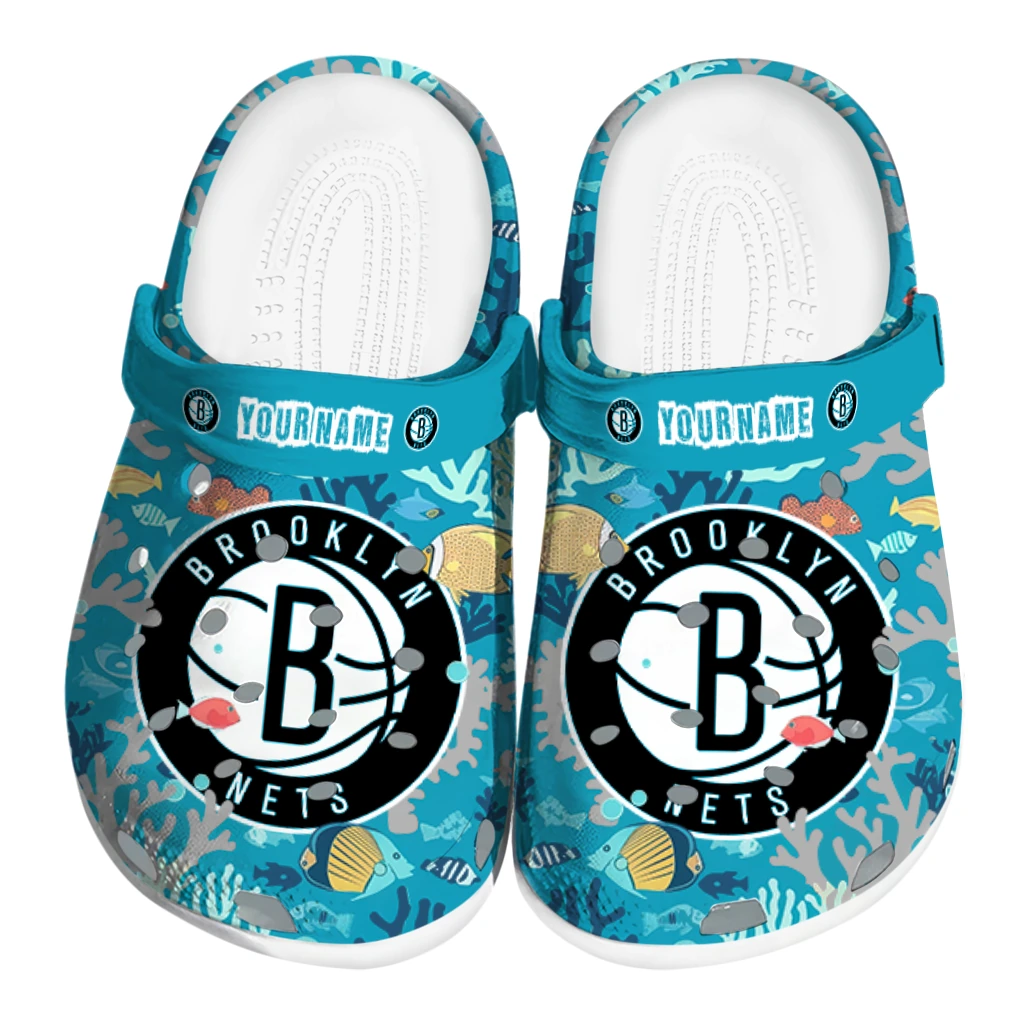 Customized Brooklyn Nets Tropical Fish Ocean Clogs