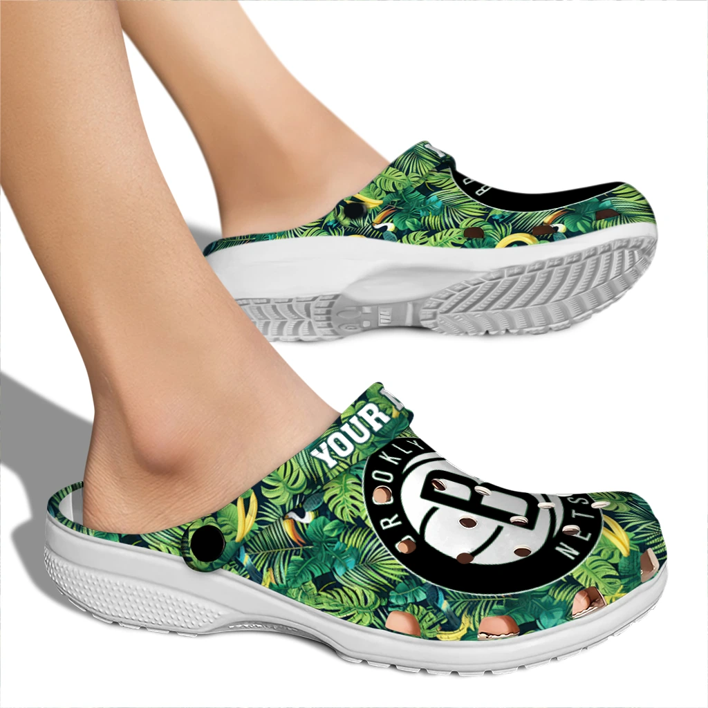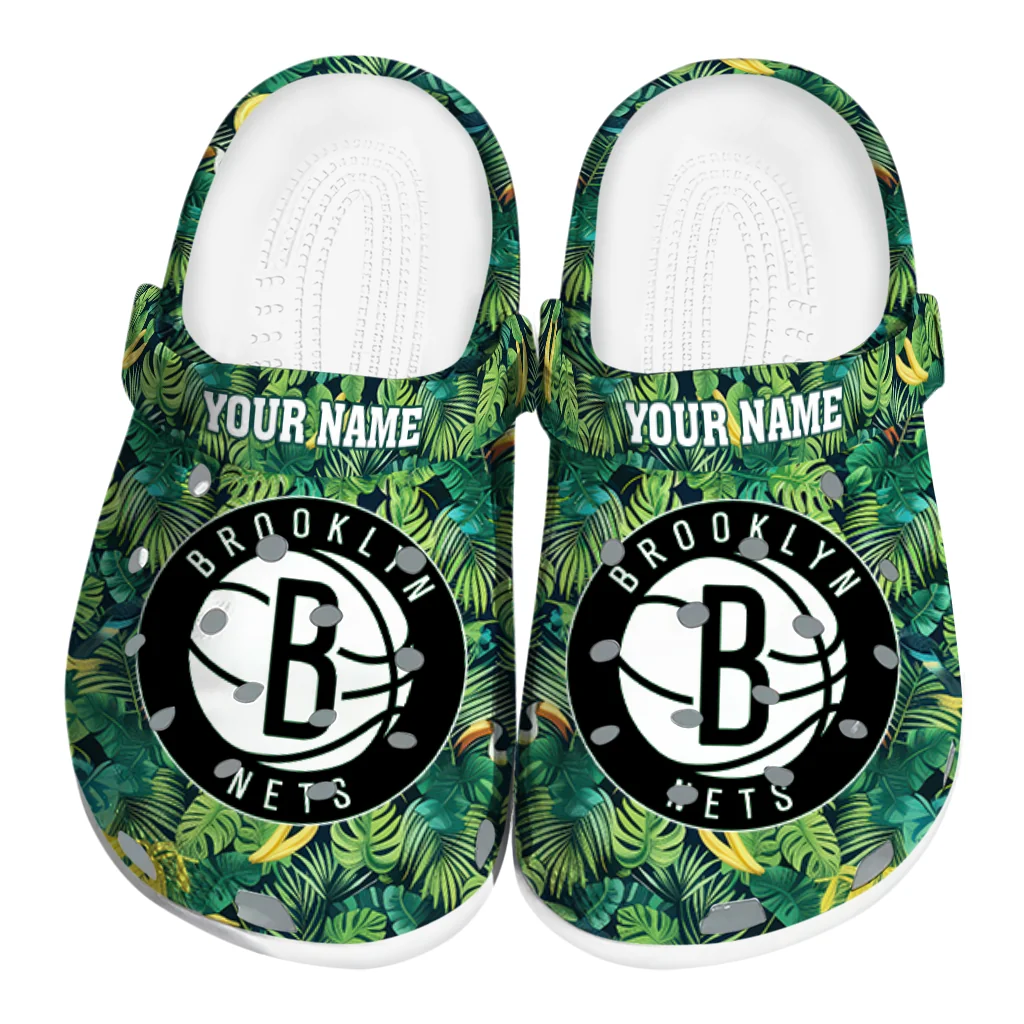Customized Brooklyn Nets Tropical Leaves Clogs