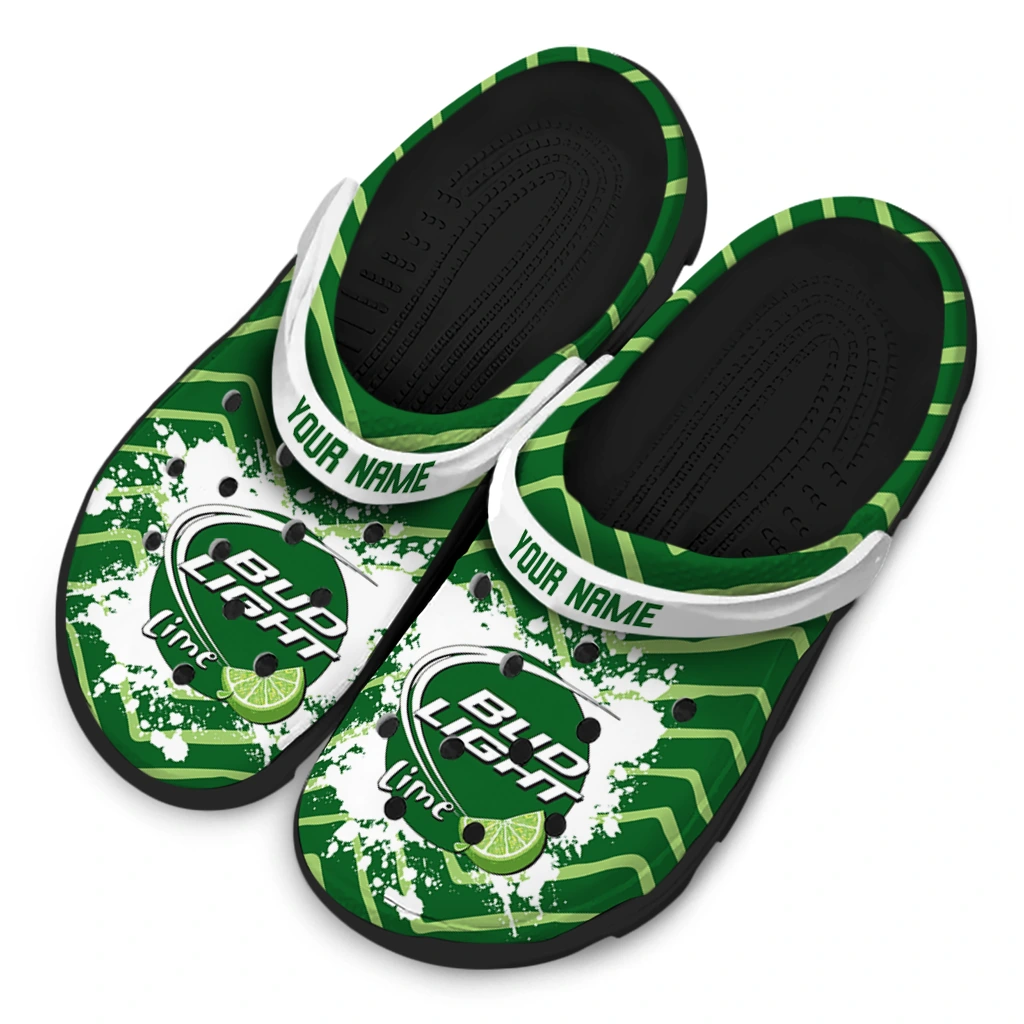Customized Bud light Green Splash Green White Clogs
