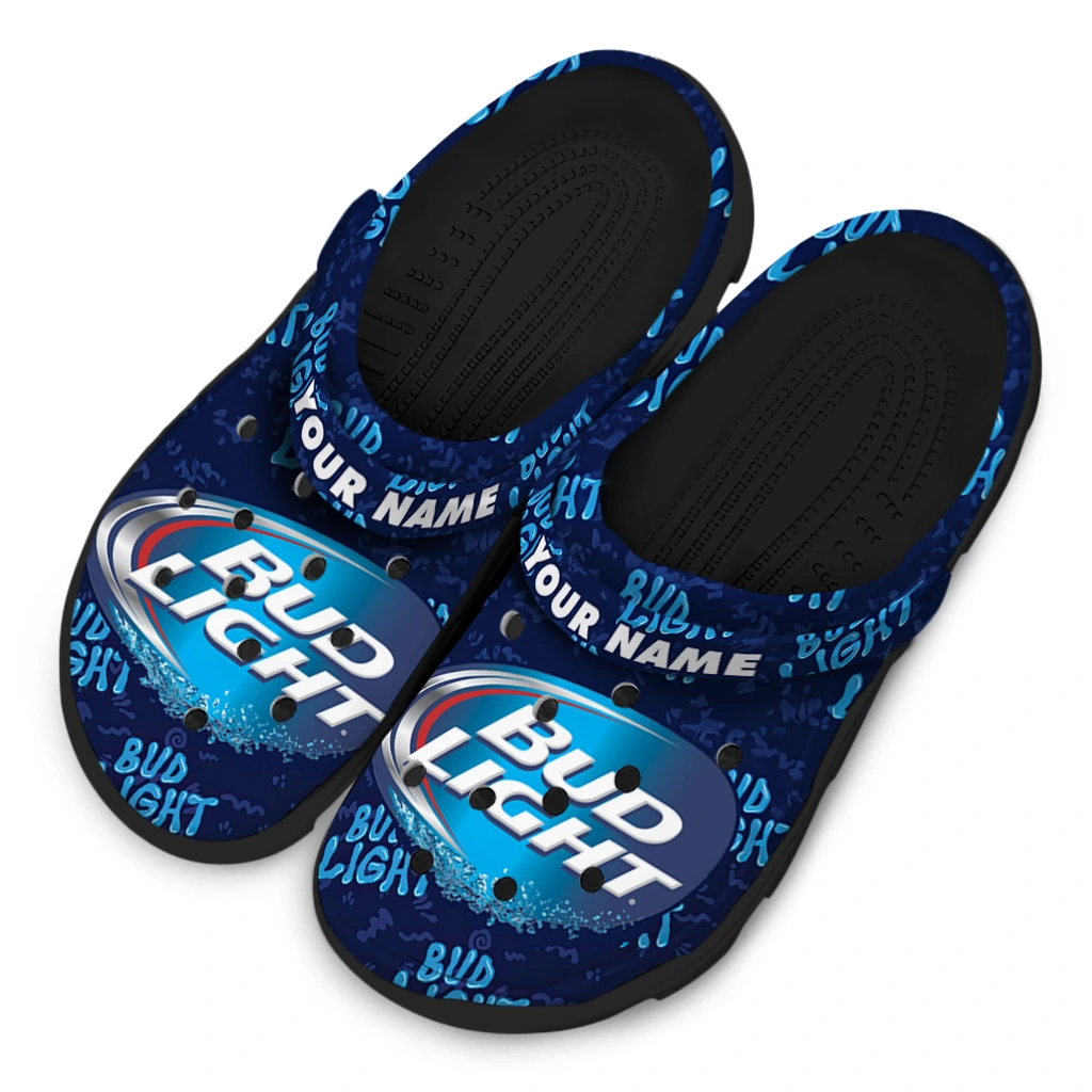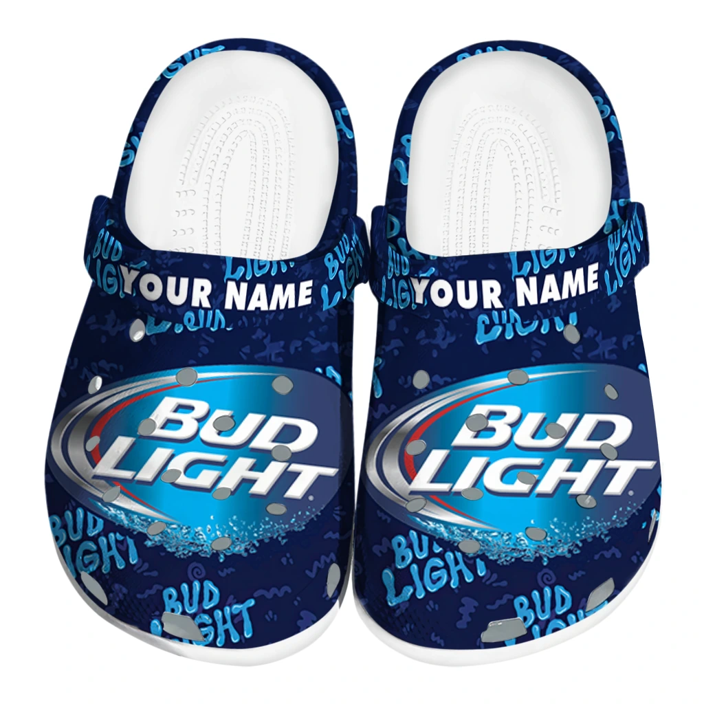 Customized Bud light Text Pattern Blue White Clogs
