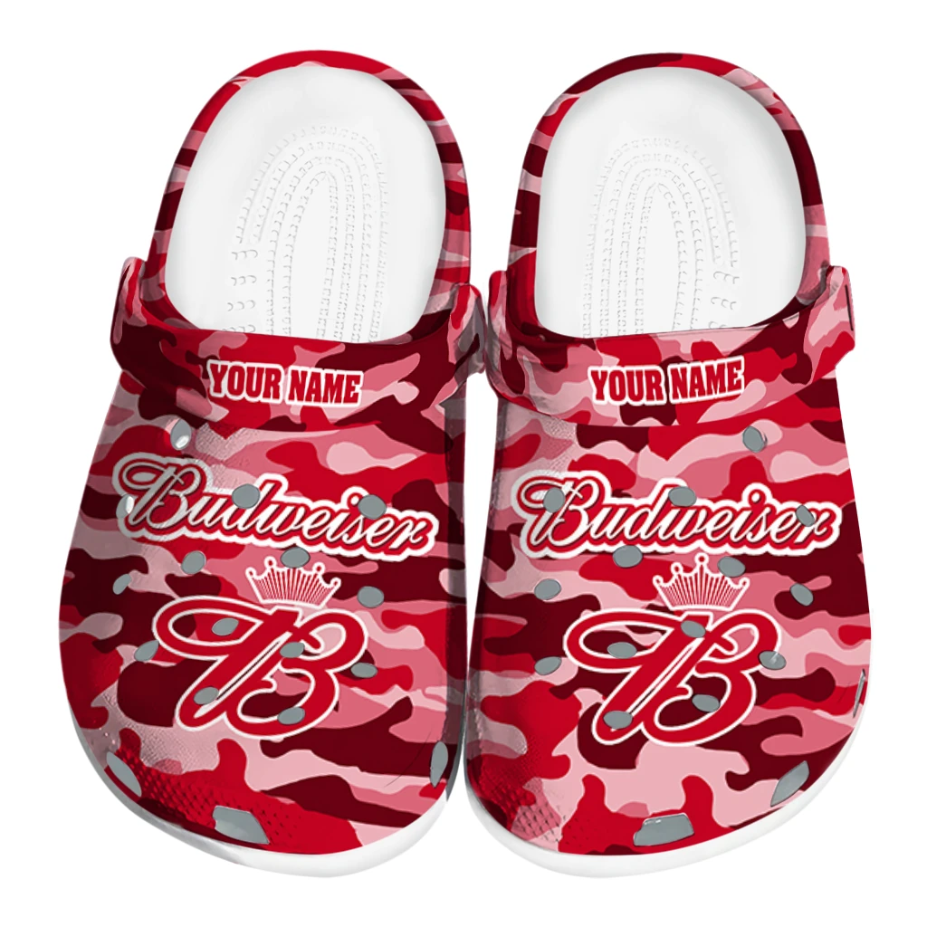 Customized Budweiser Camouflage Shapes Red Pink Clogs