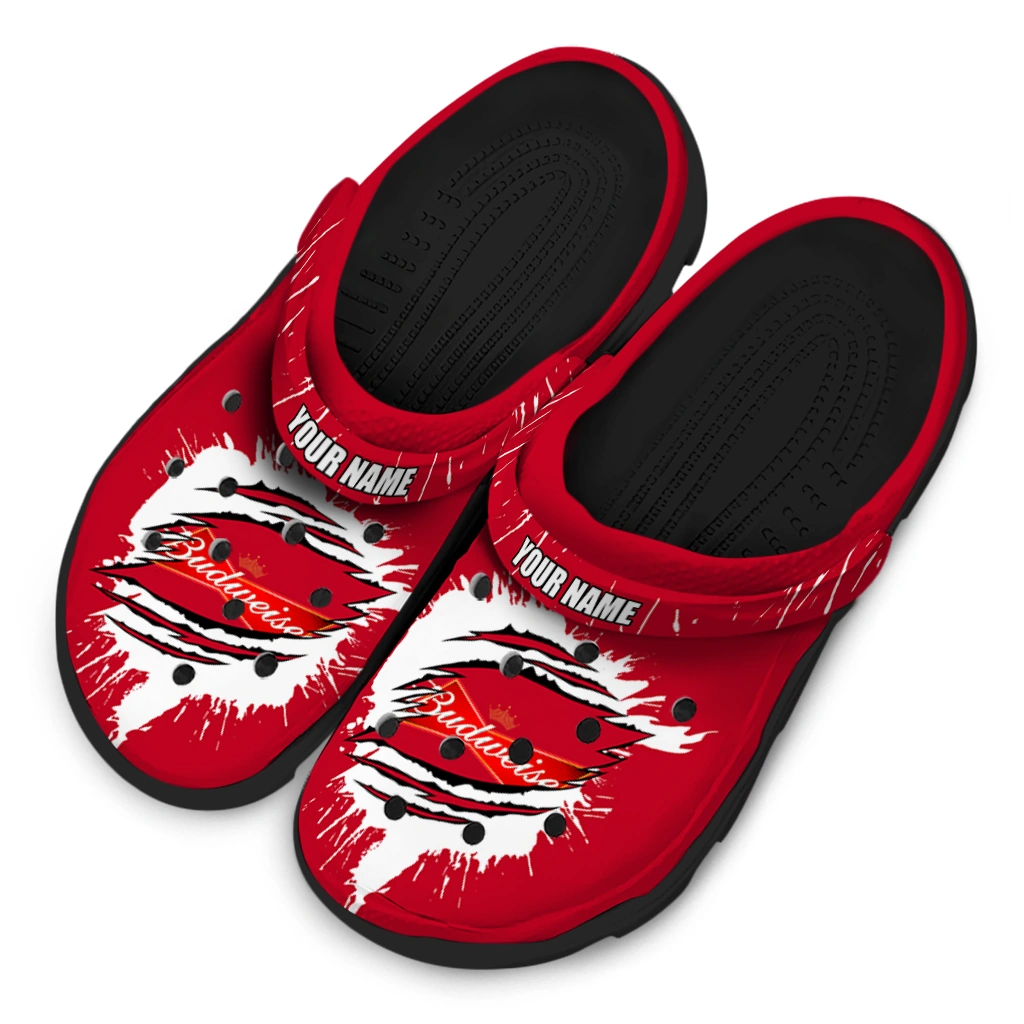 Customized Budweiser Claw Logo Red White Clogs