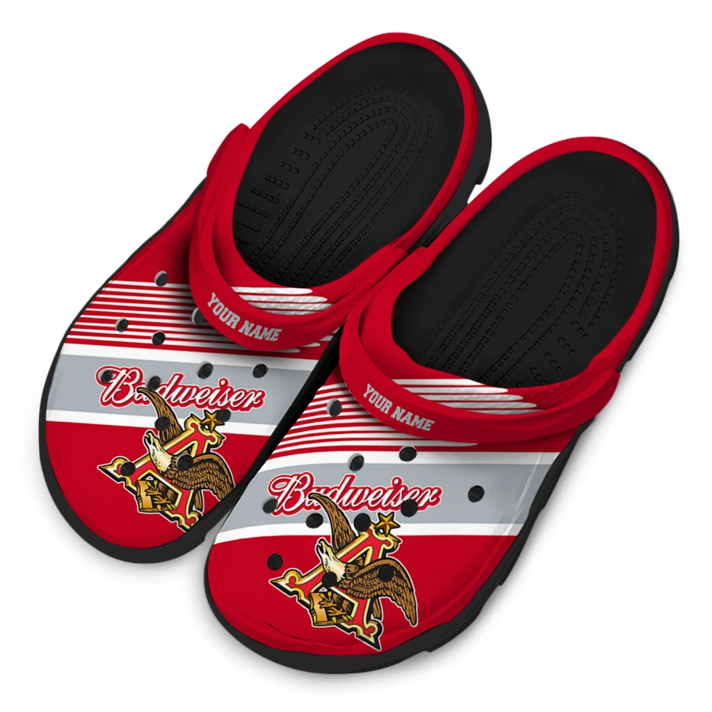 Customized Budweiser Crest Script Red White Clogs