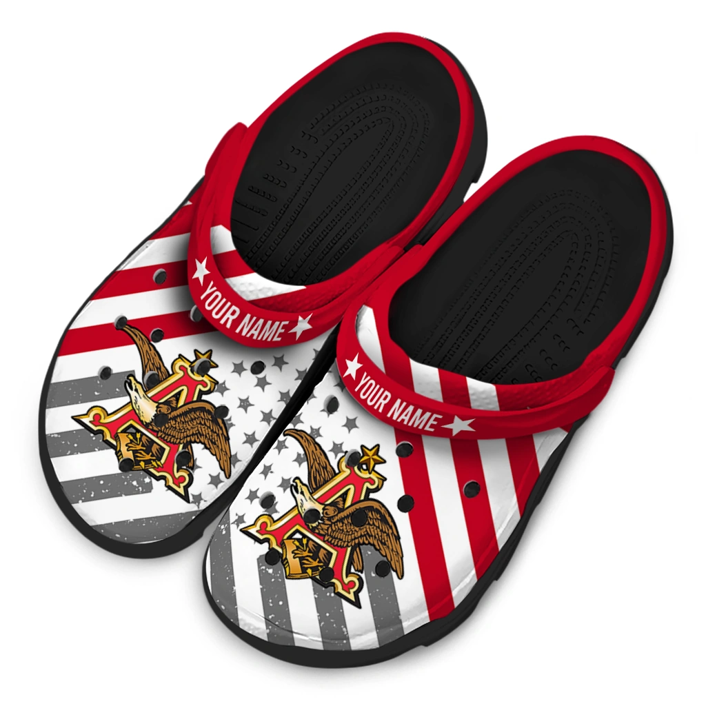 Customized Budweiser Crest Stars Red White Clogs
