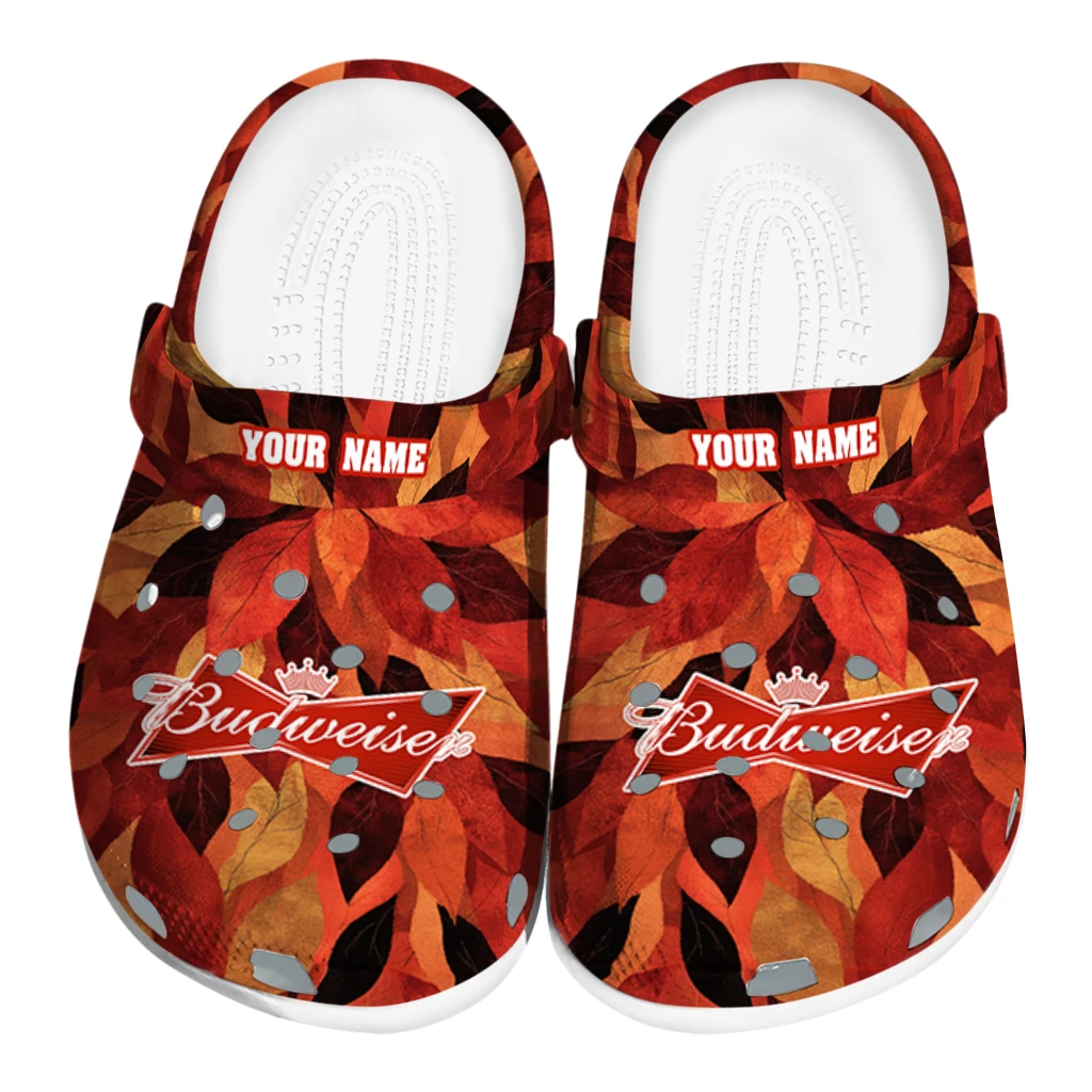 Customized Budweiser Leaves Overlay Red Orange Clogs
