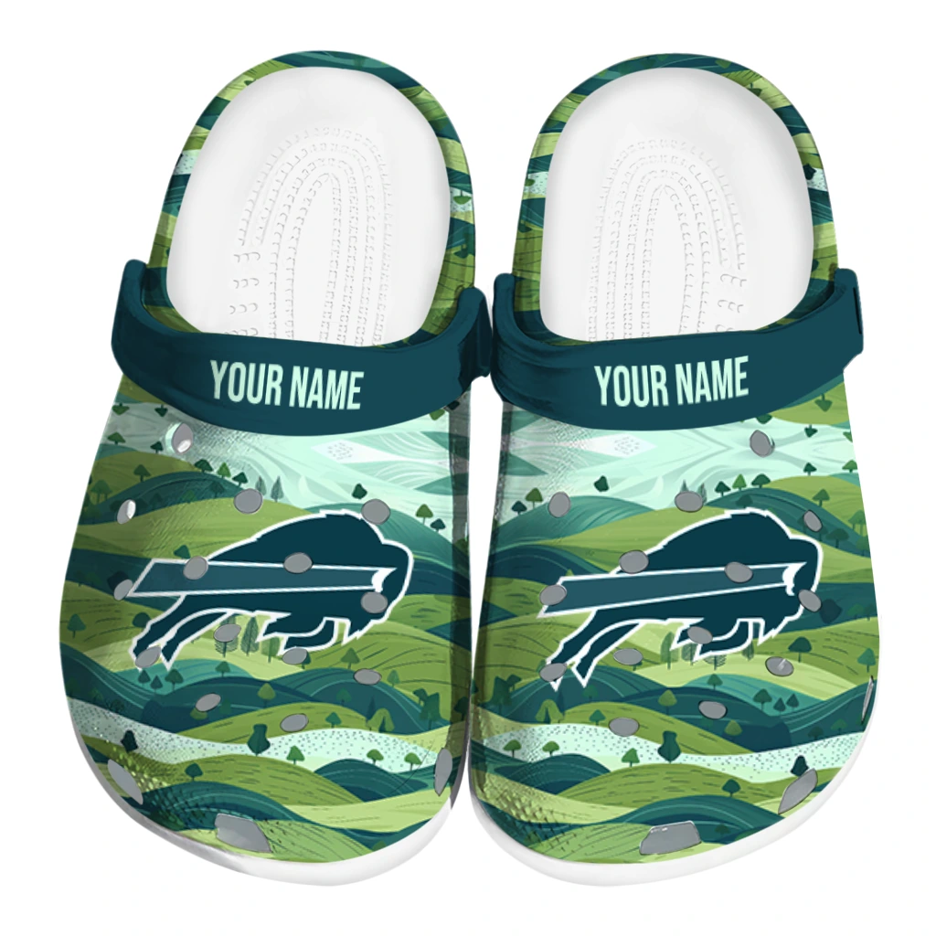 Your Clogs, Your Vibe, Your Name! Customized Buffalo Bills Hills Illustration Clogs from Hey Clogs lets you take sport team-inspired style to a personal level! Featuring the bold colors you love, these featherlight clogs deliver unbeatable, all-day comfort. What a great way to make them truly yours: add your name to the heel strap! Perfect for gifting or treating yourself, these personalized clogs are a fun, spirited way to step out in comfort.