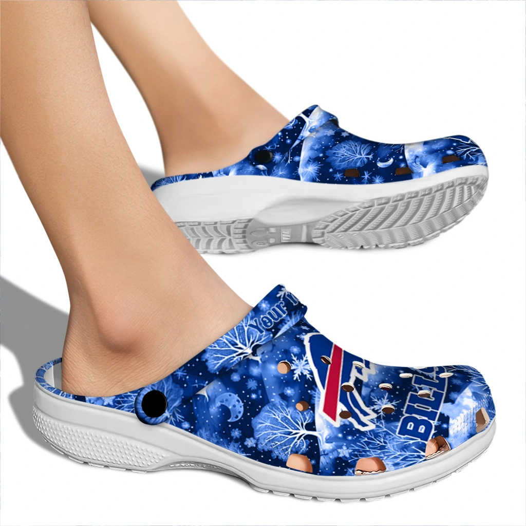 Your Clogs, Your Vibe, Your Name! Custom Buffalo Bills Snowflake Mosaic Clogs from Hey Clogs lets you take sport team-inspired style to a personal level! Featuring the bold colors you love, these featherlight clogs deliver unbeatable, all-day comfort. What a great way to make them truly yours: add your name to the heel strap! Perfect for gifting or treating yourself, these personalized clogs are a fun, spirited way to step out in comfort.
