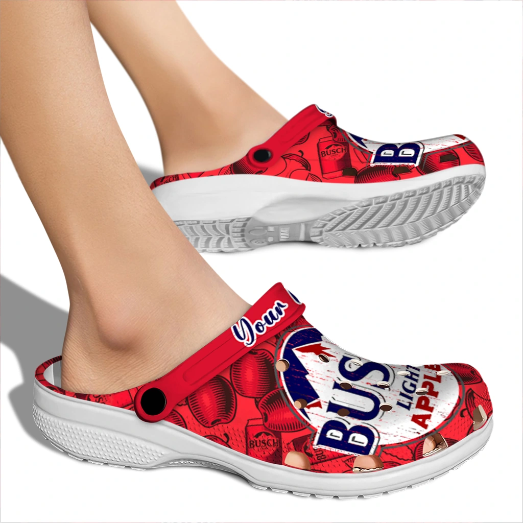 The Customized Busch Light Apple Flavor Red Clogs from Hey Clogs slips on in seconds and keeps pace with your day – from slow mornings at home to city strolls and weekend getaways. Thoughtful design meets playful style with cheerful colors and prints that pop, adding personality to every step while delivering easy, breezy comfort and lightweight support wherever you wander. Want a signature touch? Customize yours with a name or initials for a one-of-one pair.