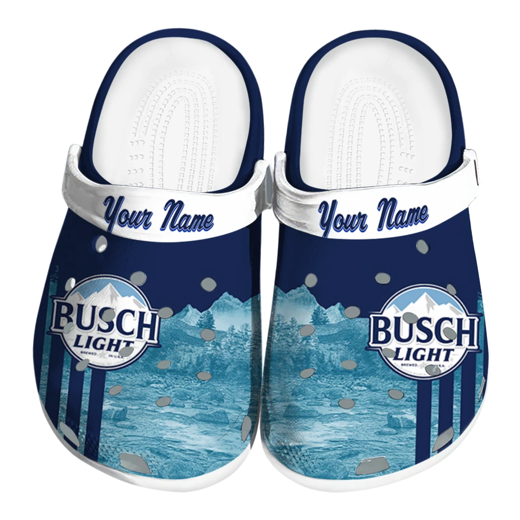 Customized Busch Light Crest Peaks Blue White Clogs