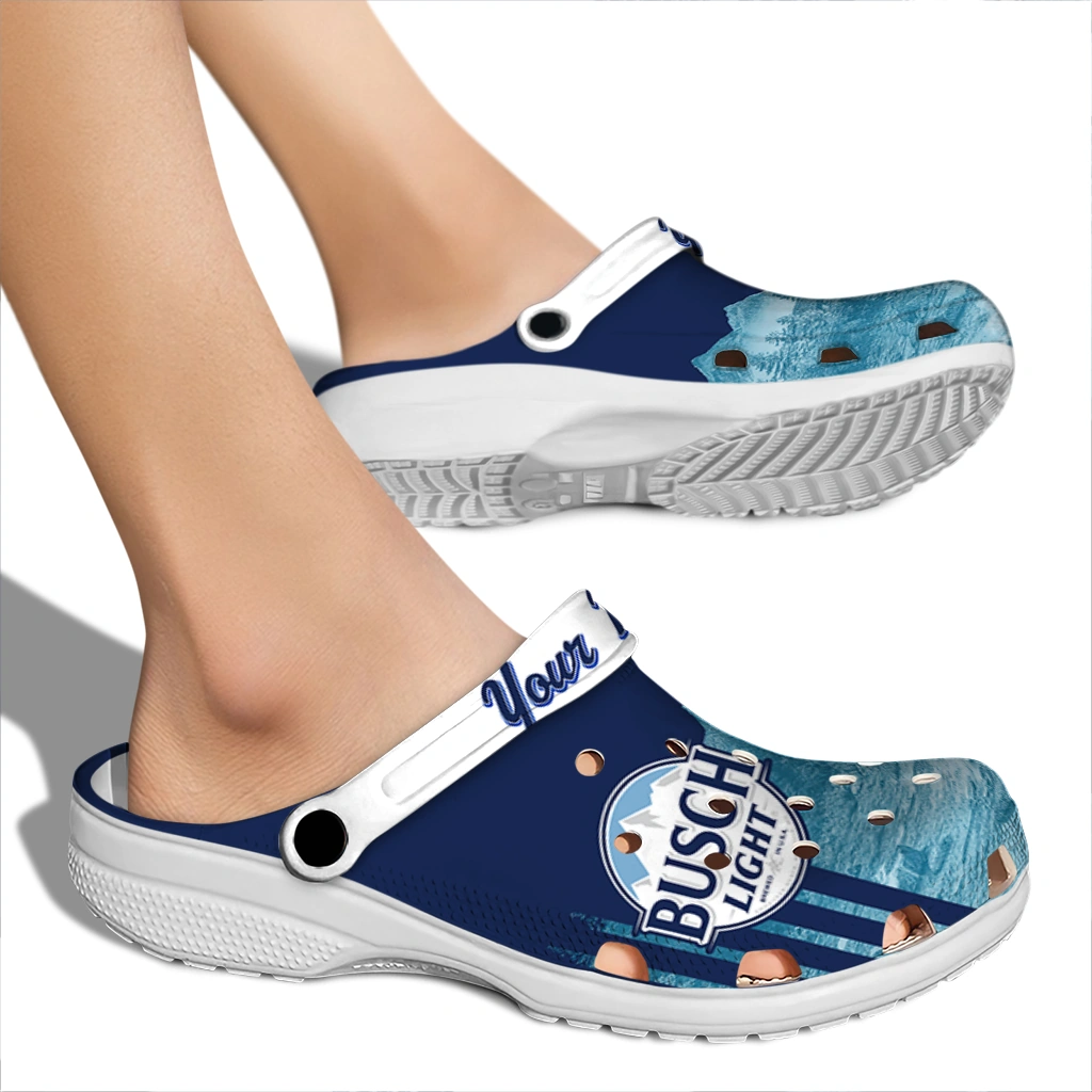 The Customized Busch Light Crest Peaks Blue White Clogs from Hey Clogs slips on in seconds and keeps pace with your day – from slow mornings at home to city strolls and weekend getaways. Thoughtful design meets playful style with cheerful colors and prints that pop, adding personality to every step while delivering easy, breezy comfort and lightweight support wherever you wander. Want a signature touch? Customize yours with a name or initials for a one-of-one pair.