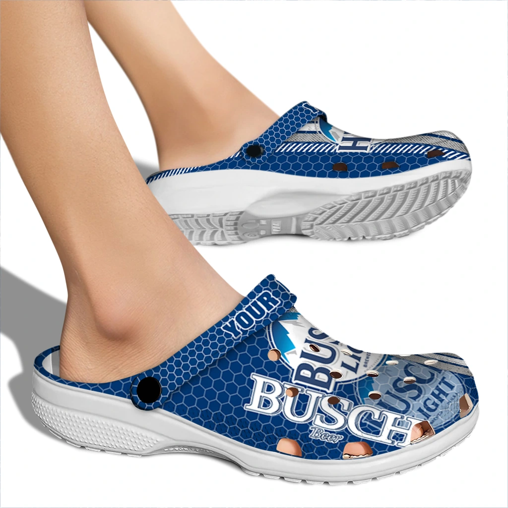 The Customized Busch Light Logo Accent Blue White Clogs from Hey Clogs slips on in seconds and keeps pace with your day – from slow mornings at home to city strolls and weekend getaways. Thoughtful design meets playful style with cheerful colors and prints that pop, adding personality to every step while delivering easy, breezy comfort and lightweight support wherever you wander. Want a signature touch? Customize yours with a name or initials for a one-of-one pair.