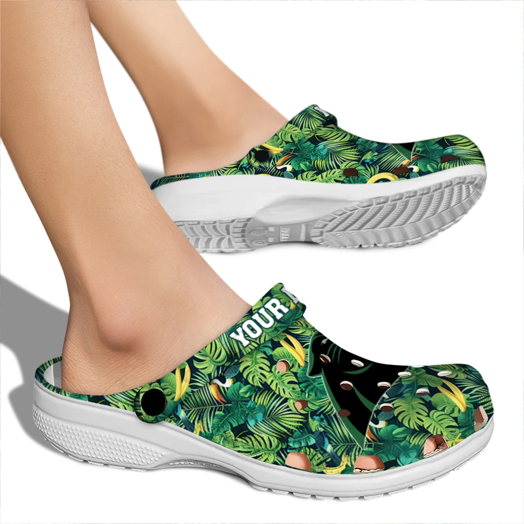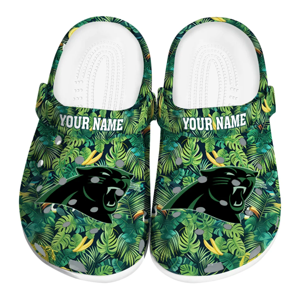 Your Clogs, Your Vibe, Your Name! Customized Carolina Panthers Tropical Leaves Clogs from Hey Clogs lets you take sport team-inspired style to a personal level! Featuring the bold colors you love, these featherlight clogs deliver unbeatable, all-day comfort. What a great way to make them truly yours: add your name to the heel strap! Perfect for gifting or treating yourself, these personalized clogs are a fun, spirited way to step out in comfort.
