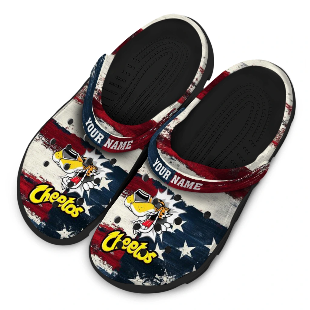 You’ll love it at first sight – and even more when it’s yours alone. Finish your clogs with a custom name or initials for a personal signature that stands out. Advanced UV printing keeps colors vivid without fading or peeling, so your look stays fresh from home lounging to errands, travel days, and lazy afternoons by the water. Easy to slip on and easy to love, the Customized Cheetos Mascot Burst Red White Clogs brings together practicality, personality, and the playful spirit of Hey Clogs.