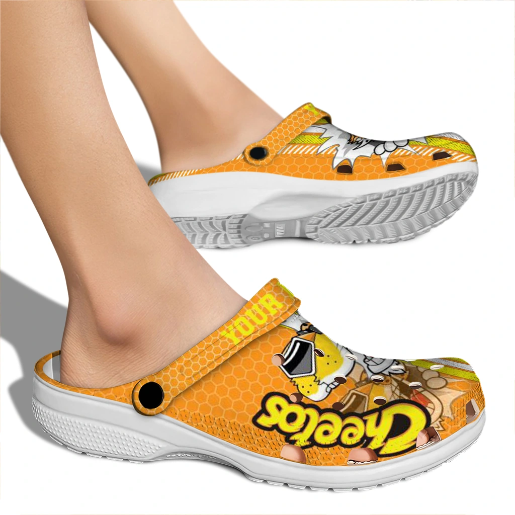 The Customized Cheetos Snack Attack Orange Yellow Clogs from Hey Clogs slips on in seconds and keeps pace with your day – from slow mornings at home to city strolls and weekend getaways. Thoughtful design meets playful style with cheerful colors and prints that pop, adding personality to every step while delivering easy, breezy comfort and lightweight support wherever you wander. Want a signature touch? Customize yours with a name or initials for a one-of-one pair.