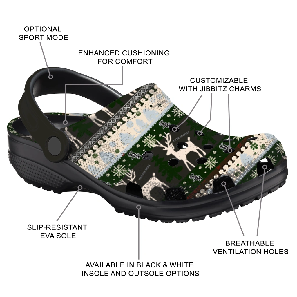 Your Clogs, Your Vibe, Your Name! Customized Chicago White Sox Christmas Motif Clogs from Hey Clogs lets you take sport team-inspired style to a personal level! Featuring the bold colors you love, these featherlight clogs deliver unbeatable, all-day comfort. What a great way to make them truly yours: add your name to the heel strap! Perfect for gifting or treating yourself, these personalized clogs are a fun, spirited way to step out in comfort.