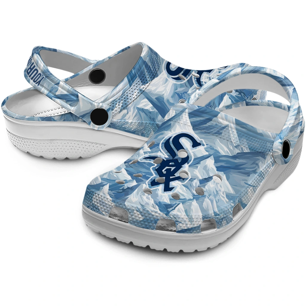 Your Clogs, Your Vibe, Your Name! Customized Chicago White Sox Mountain Artwork Clogs from Hey Clogs lets you take sport team-inspired style to a personal level! Featuring the bold colors you love, these featherlight clogs deliver unbeatable, all-day comfort. What a great way to make them truly yours: add your name to the heel strap! Perfect for gifting or treating yourself, these personalized clogs are a fun, spirited way to step out in comfort.