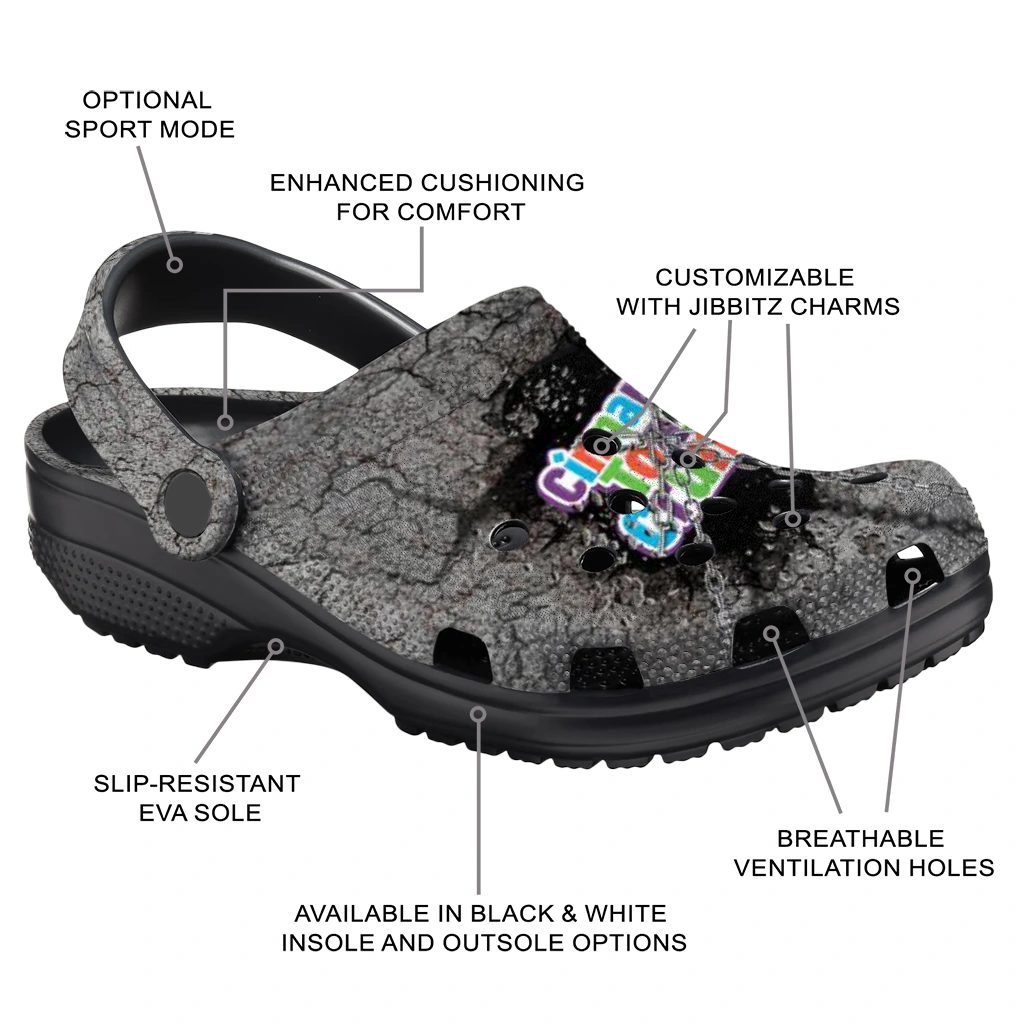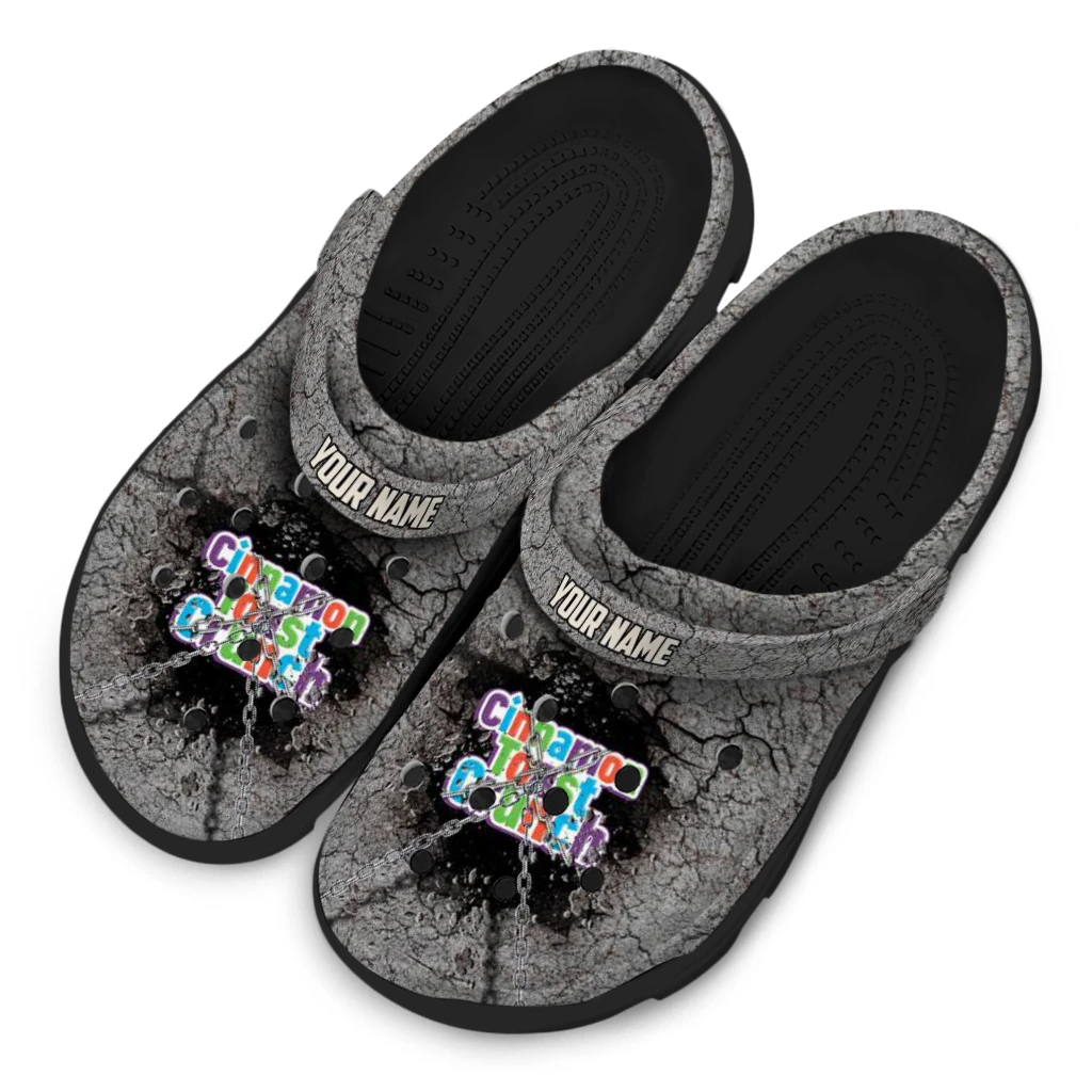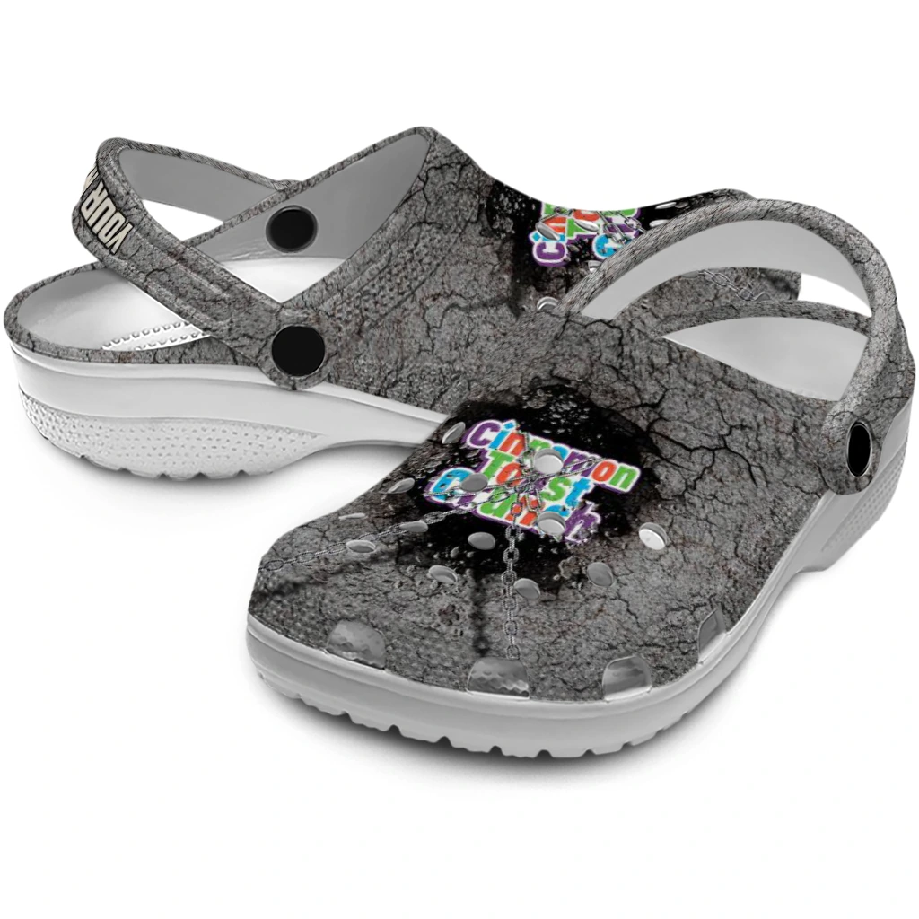 Customized Cinamon Toast Crunch Crack Texture Gray Black Clogs