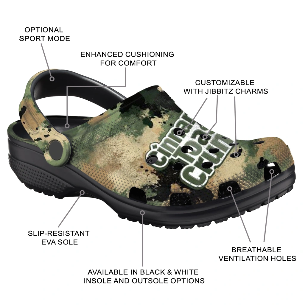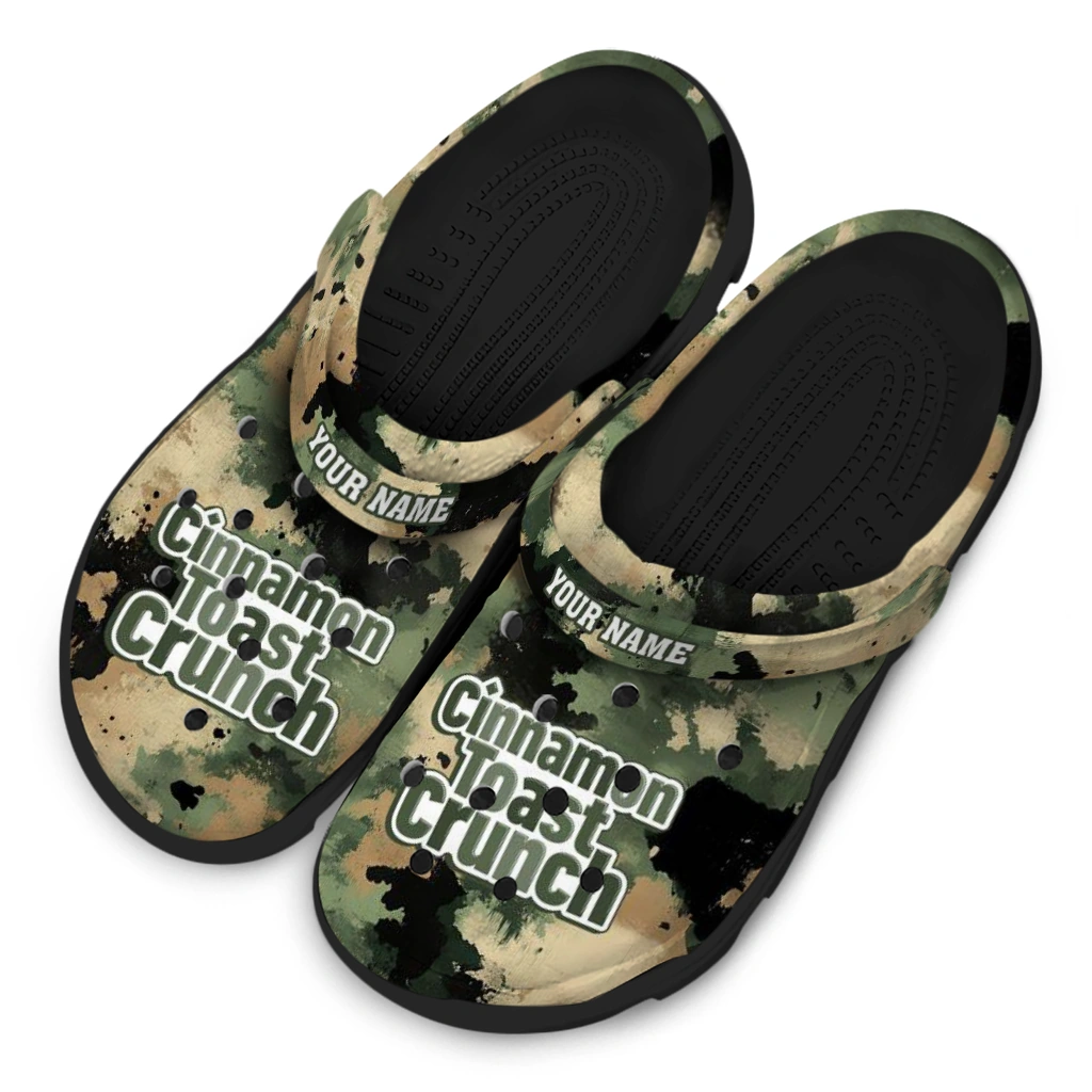 Customized Cinamon Toast Crunch Green Camouflage Green Black Clogs