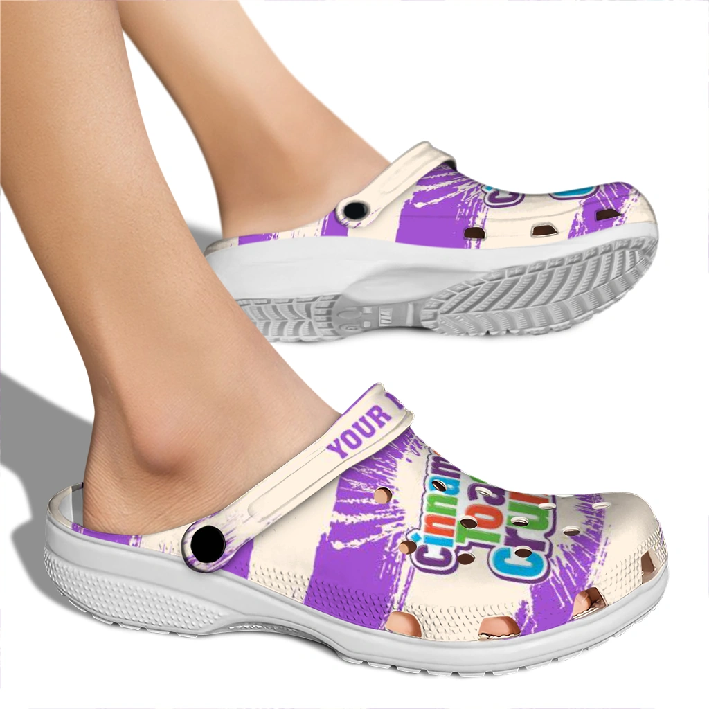 Customized Cinamon Toast Crunch Logo Crunch Purple Beige Clogs