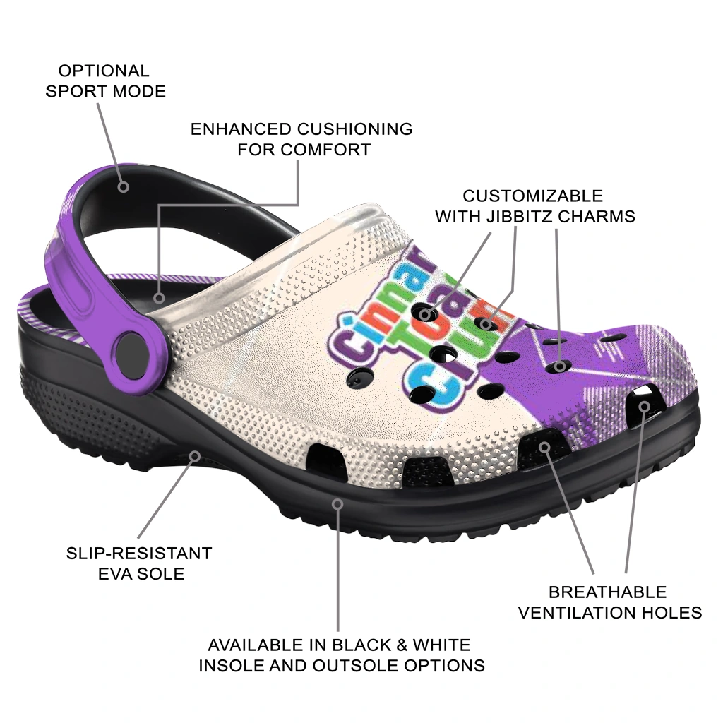 Customized Cinamon Toast Crunch Mosaic Pattern Purple Beige Clogs