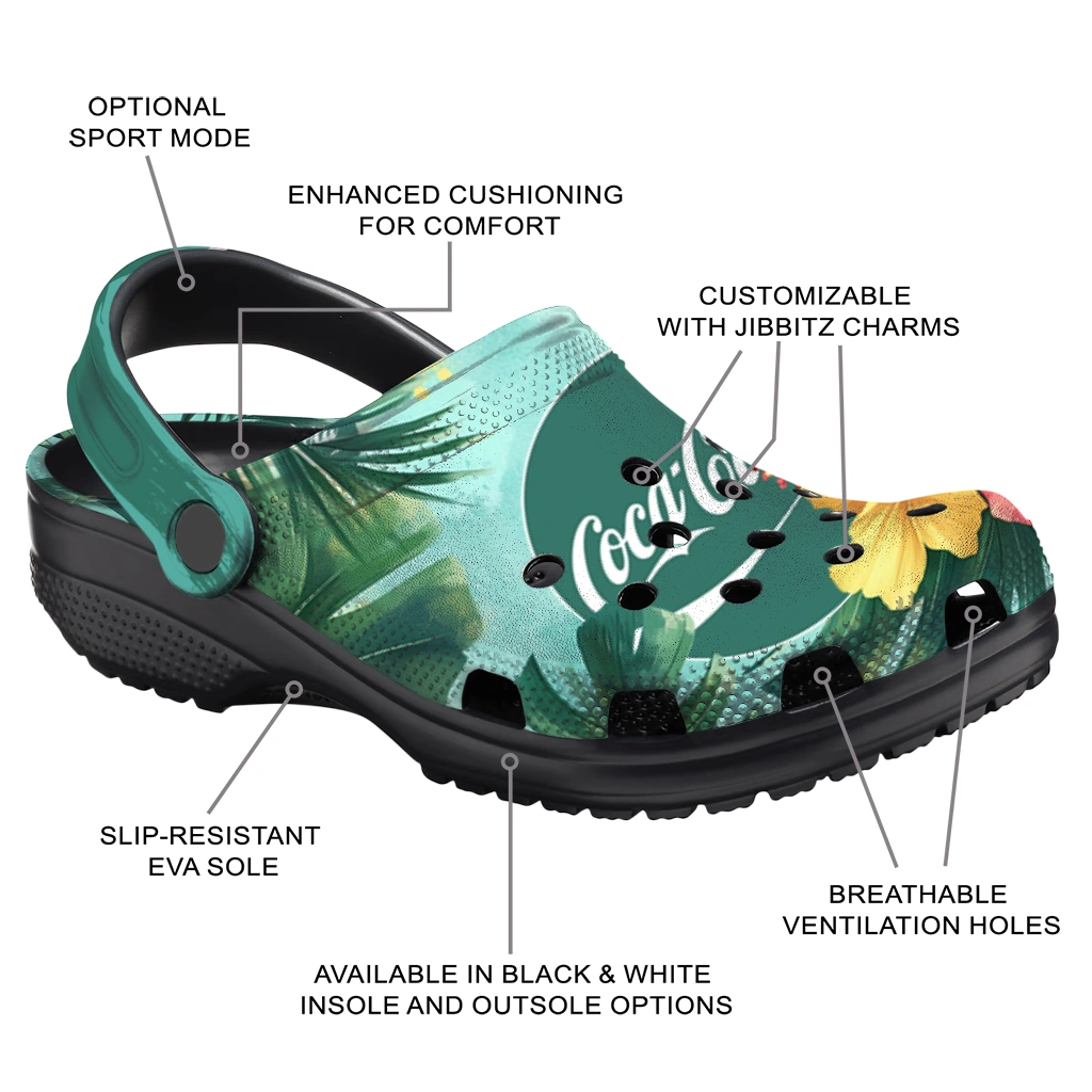 Can’t take your eyes off the Customized Coca-Cola Hibiscus Cluster Green Red Clogs? We get it. This pair mixes sun-bright prints with cloud-soft comfort in a silhouette that’s effortless to style and even easier to wear. Crafted from premium EVA, it’s ultra-light yet supportive, quick to dry after splashy moments, and steady underfoot thanks to an anti-slip sole.