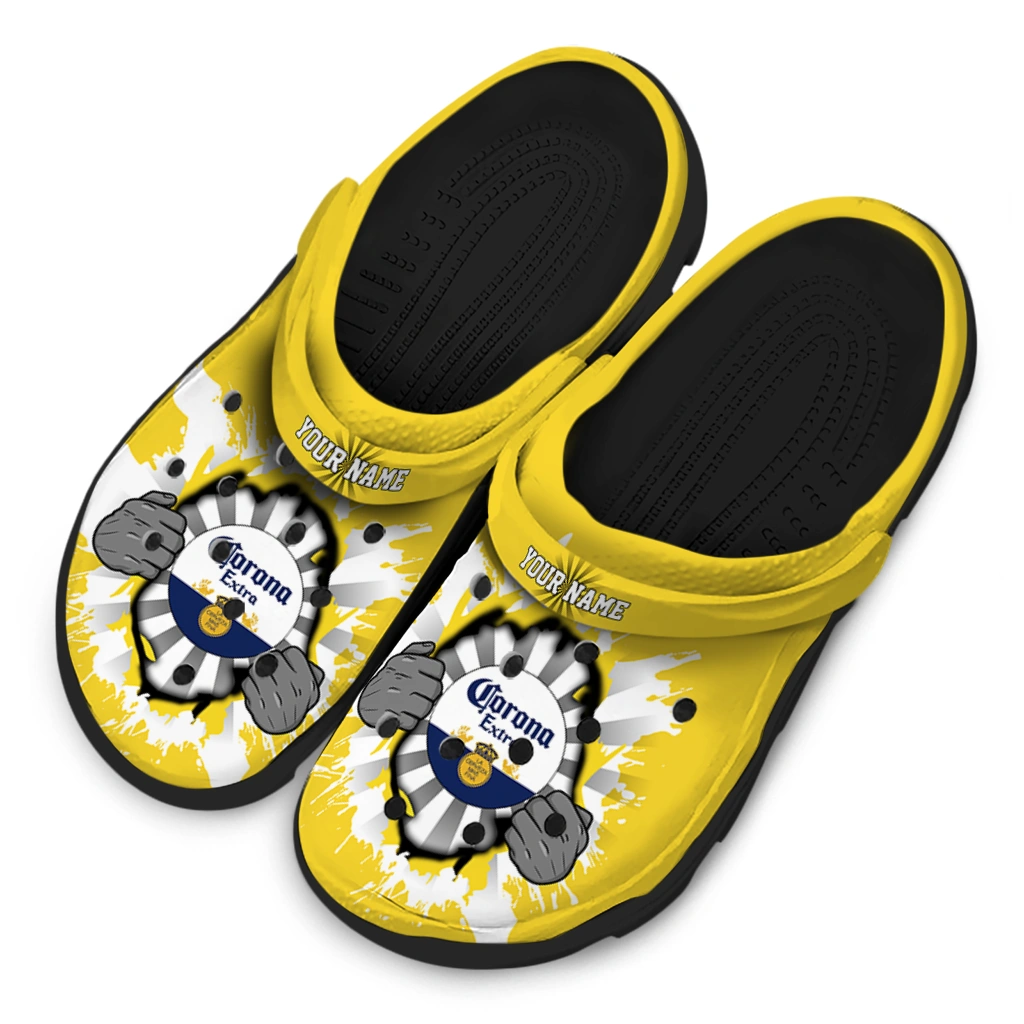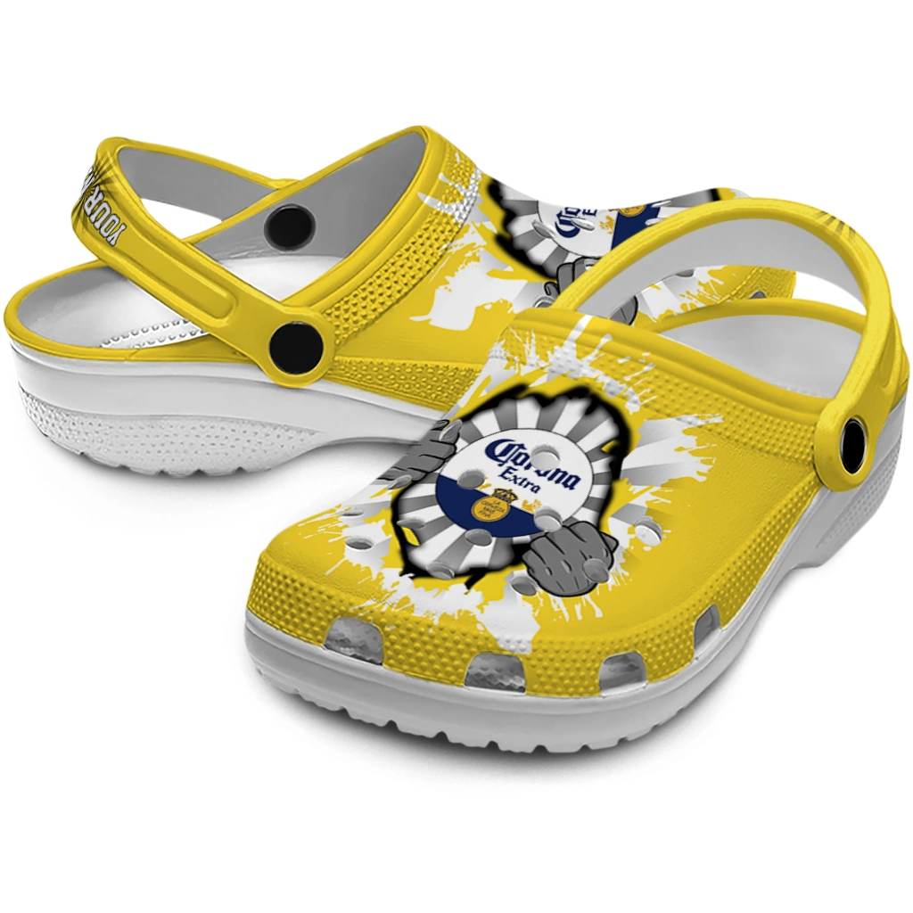 Customized Corona Beer Cap Splash Yellow White Clogs