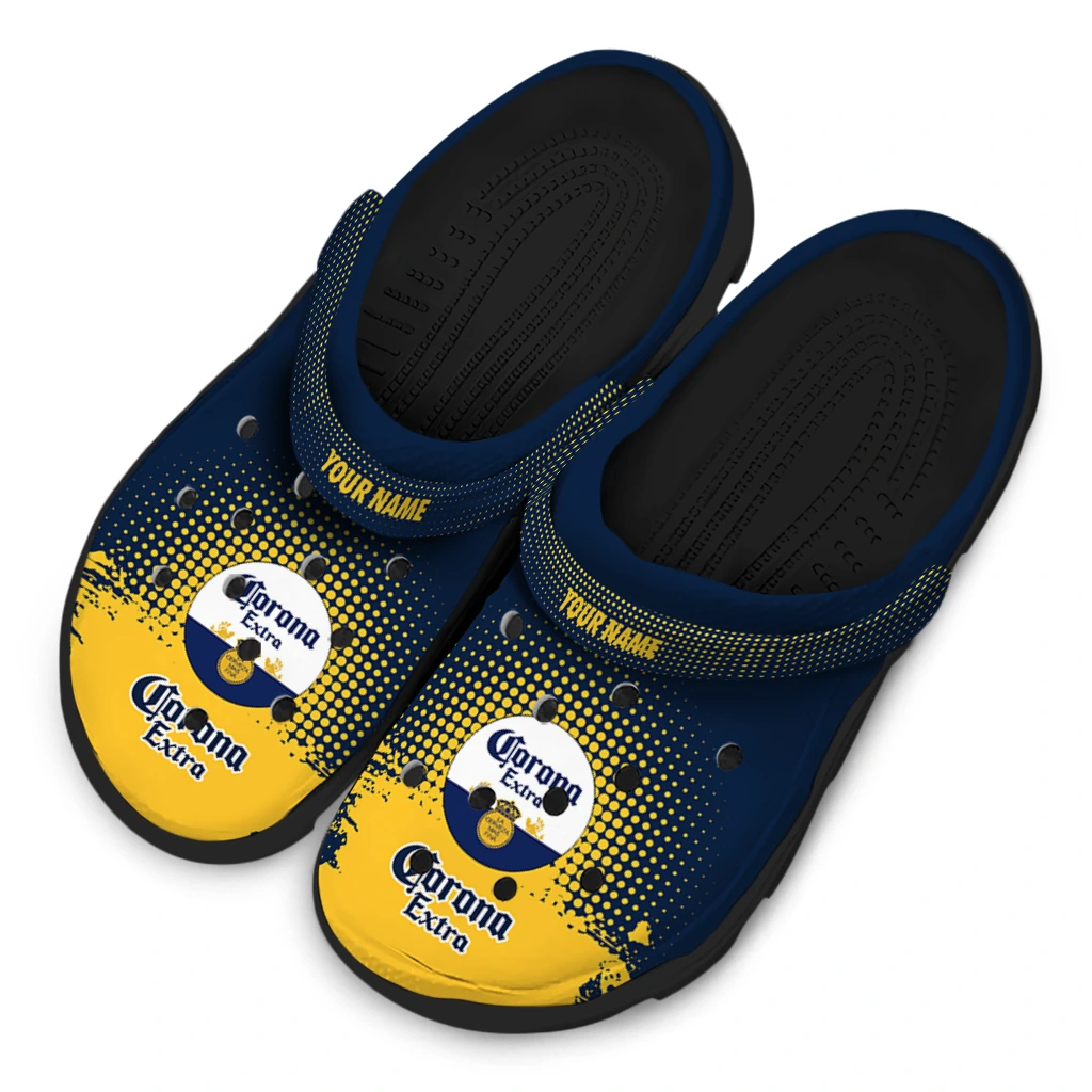 You’ll love it at first sight – and even more when it’s yours alone. Finish your clogs with a custom name or initials for a personal signature that stands out. Advanced UV printing keeps colors vivid without fading or peeling, so your look stays fresh from home lounging to errands, travel days, and lazy afternoons by the water. Easy to slip on and easy to love, the Customized Corona Beer Splash Detail Blue Yellow Clogs brings together practicality, personality, and the playful spirit of Hey Clogs.