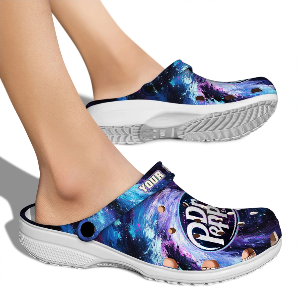 Customized Dr Pepper Galaxy Purple Blue Clogs