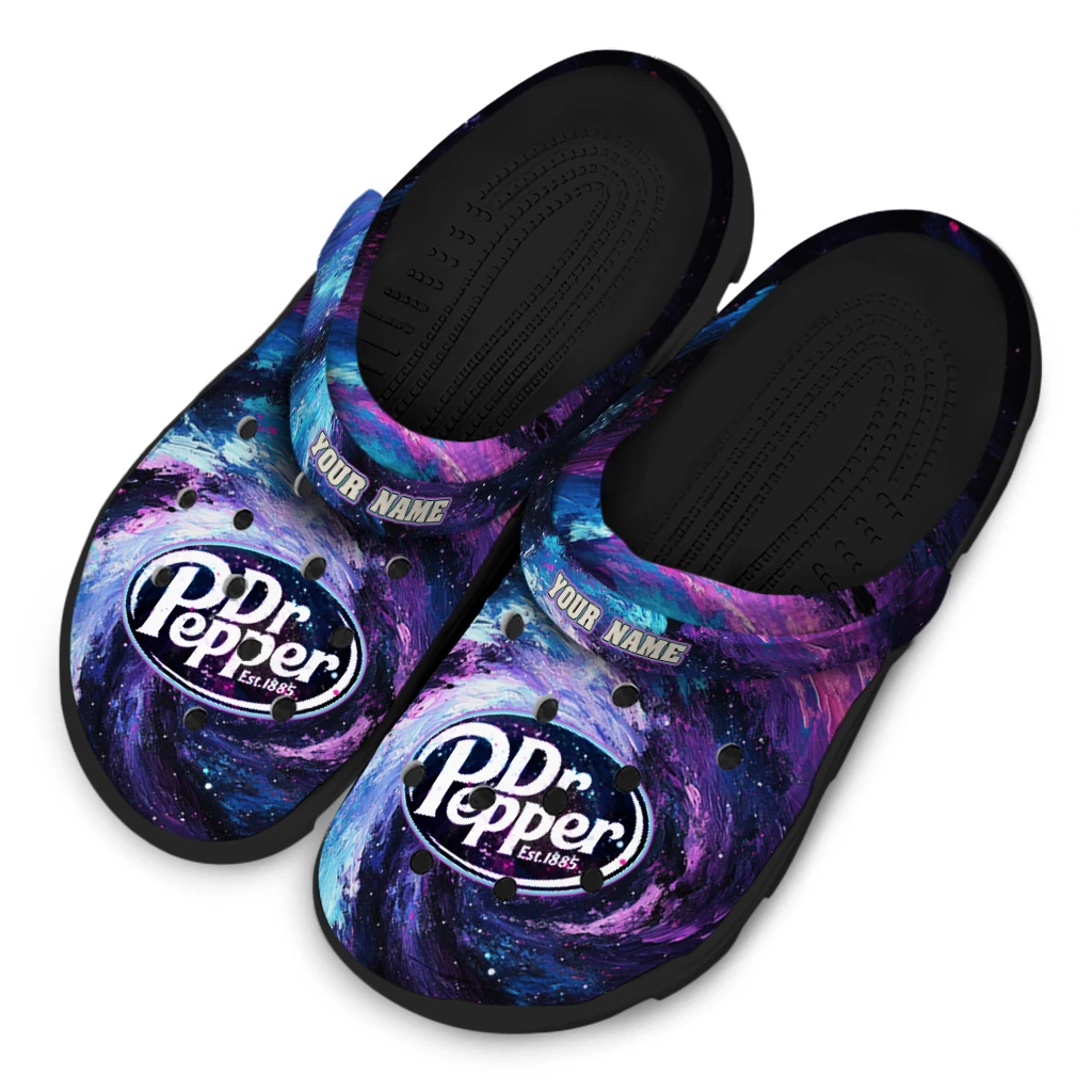 The Customized Dr Pepper Galaxy Purple Blue Clogs from Hey Clogs slips on in seconds and keeps pace with your day – from slow mornings at home to city strolls and weekend getaways. Thoughtful design meets playful style with cheerful colors and prints that pop, adding personality to every step while delivering easy, breezy comfort and lightweight support wherever you wander. Want a signature touch? Customize yours with a name or initials for a one-of-one pair.