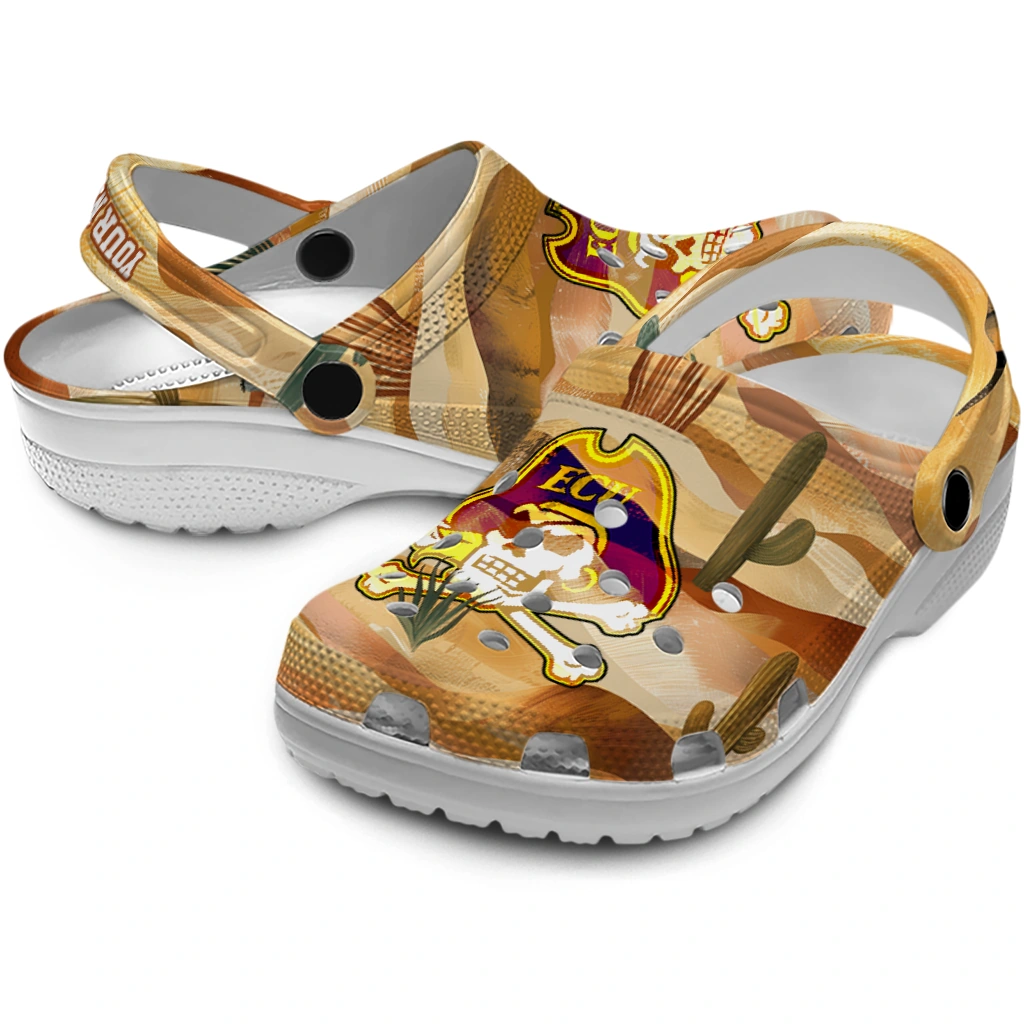 Your Clogs, Your Vibe, Your Name! Customized East Carolina Pirates Desert Layers Clogs from Hey Clogs lets you take sport team-inspired style to a personal level! Featuring the bold colors you love, these featherlight clogs deliver unbeatable, all-day comfort. What a great way to make them truly yours: add your name to the heel strap! Perfect for gifting or treating yourself, these personalized clogs are a fun, spirited way to step out in comfort.