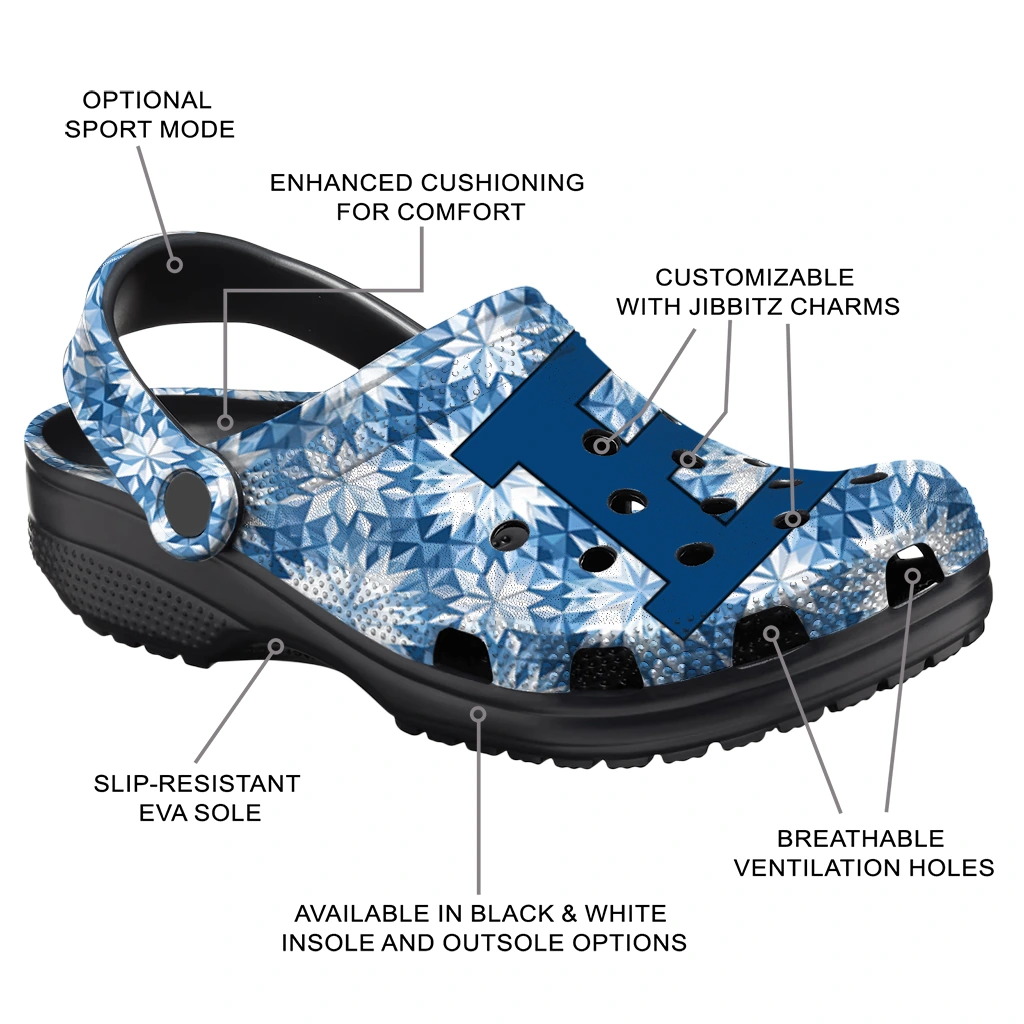 Your Clogs, Your Vibe, Your Name! Customized Eastern Michigan Eagles Snowflake Mosaic Clogs from Hey Clogs lets you take sport team-inspired style to a personal level! Featuring the bold colors you love, these featherlight clogs deliver unbeatable, all-day comfort. What a great way to make them truly yours: add your name to the heel strap! Perfect for gifting or treating yourself, these personalized clogs are a fun, spirited way to step out in comfort.