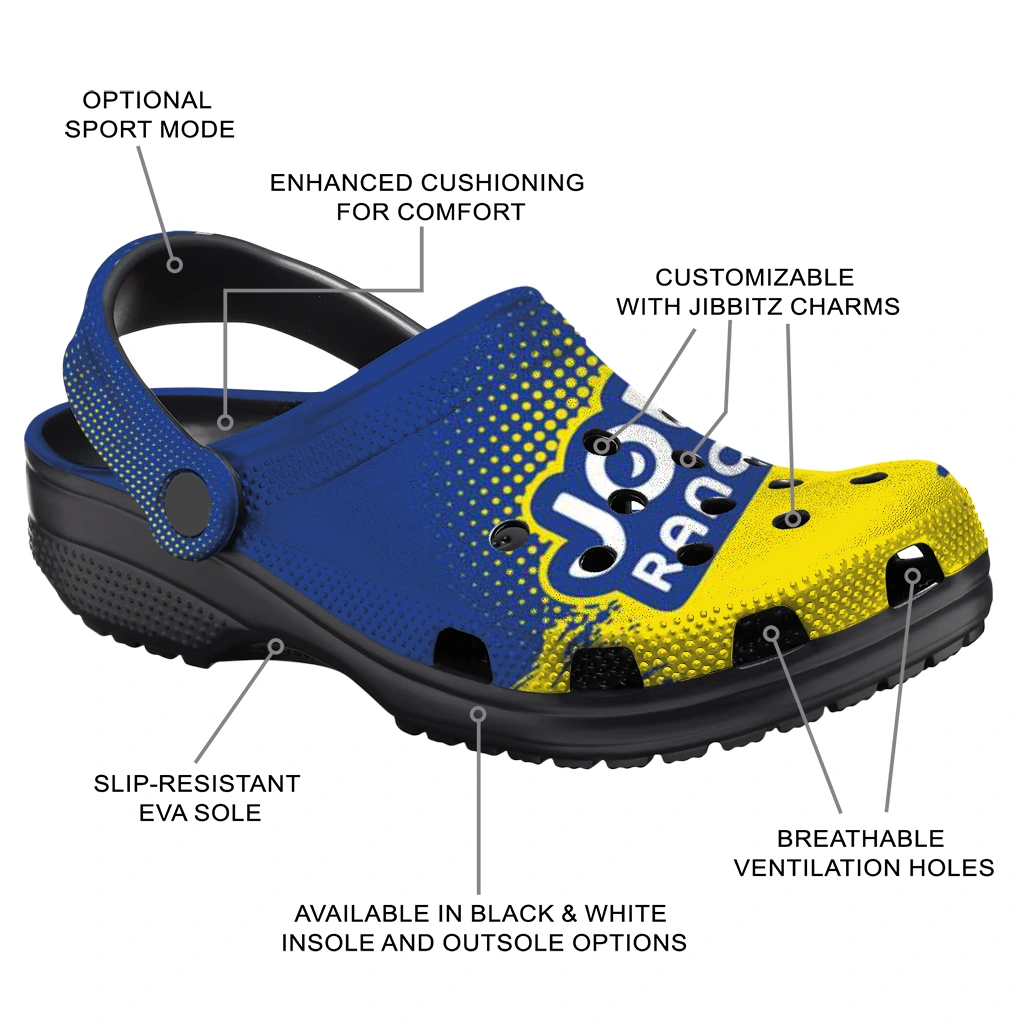 Customized Jolly rancher Bold Logo Blue Yellow Clogs