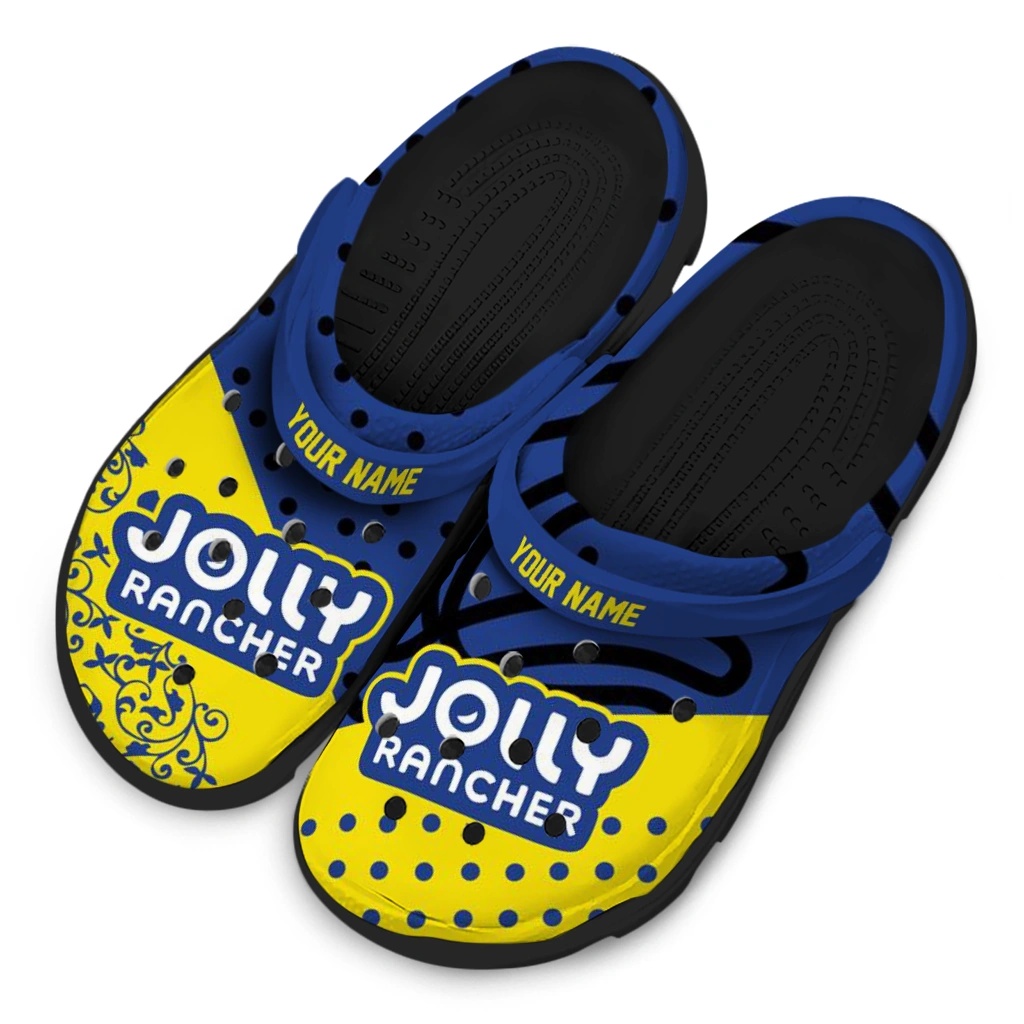 The Customized Jolly rancher Iconic Logo Blue Yellow Clogs from Hey Clogs slips on in seconds and keeps pace with your day – from slow mornings at home to city strolls and weekend getaways. Thoughtful design meets playful style with cheerful colors and prints that pop, adding personality to every step while delivering easy, breezy comfort and lightweight support wherever you wander. Want a signature touch? Customize yours with a name or initials for a one-of-one pair.
