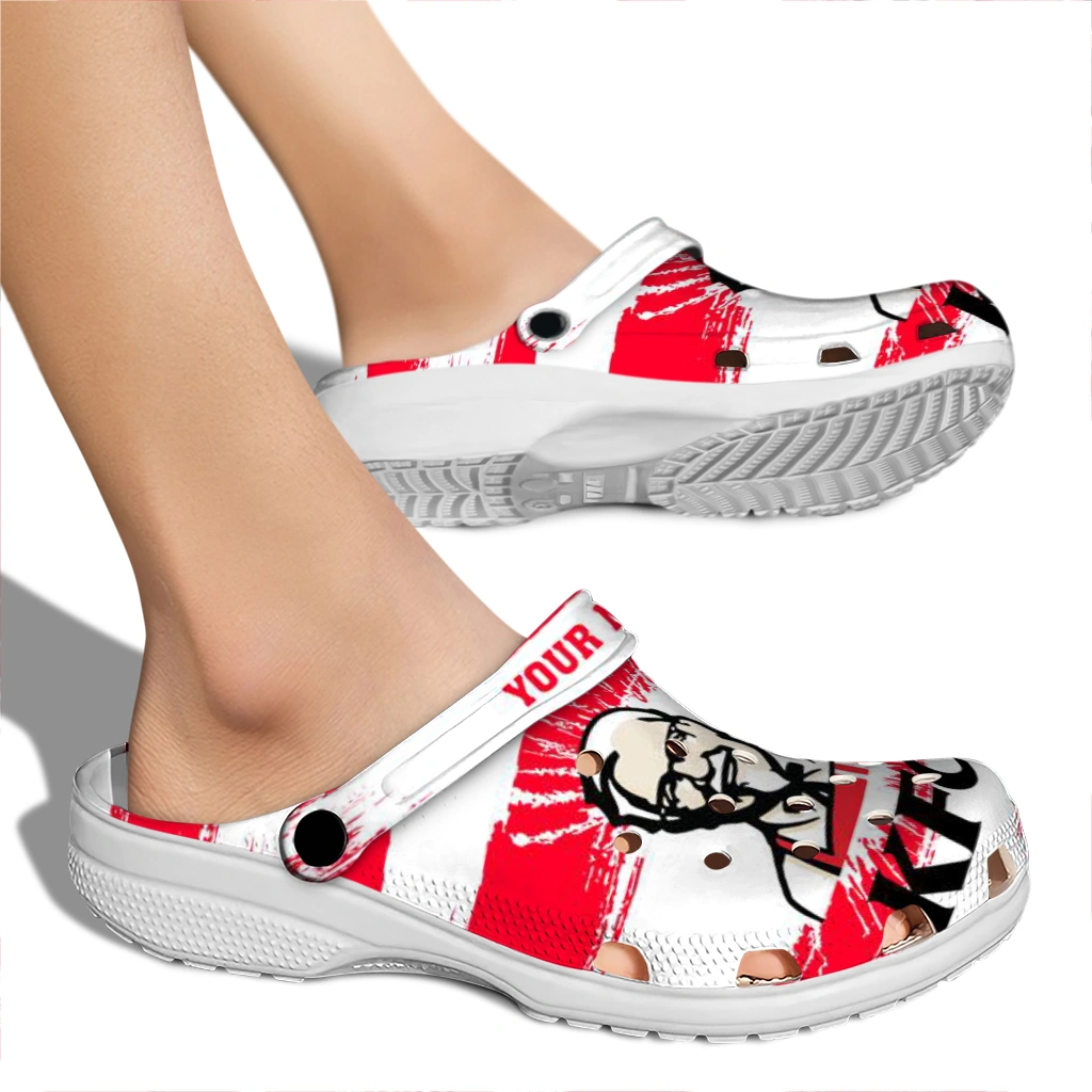 The Custom KFC Red Icon Red Black Clogs from Hey Clogs slips on in seconds and keeps pace with your day – from slow mornings at home to city strolls and weekend getaways. Thoughtful design meets playful style with cheerful colors and prints that pop, adding personality to every step while delivering easy, breezy comfort and lightweight support wherever you wander. Want a signature touch? Customize yours with a name or initials for a one-of-one pair.