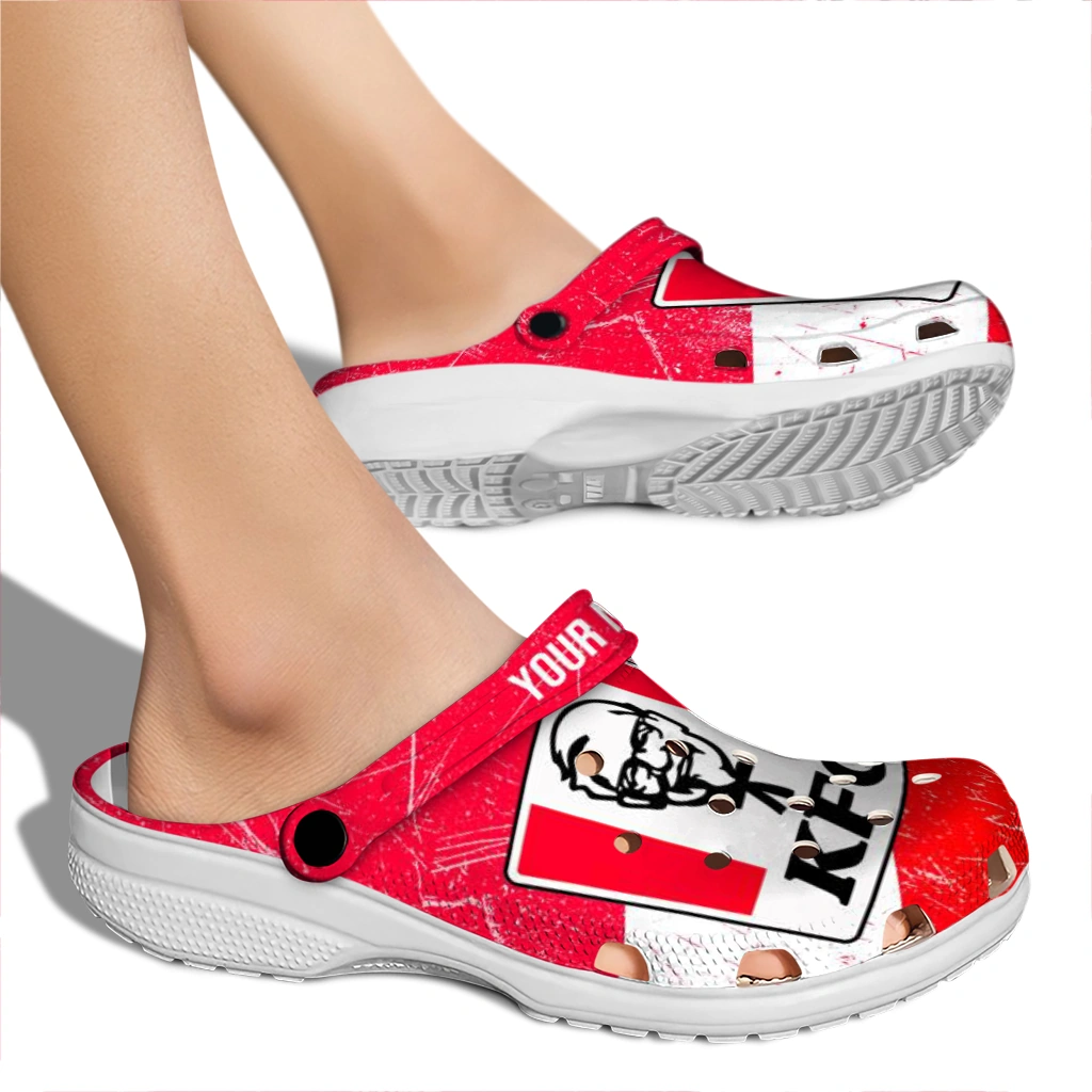 The Customized KFC Stripe Flip Red White Clogs from Hey Clogs slips on in seconds and keeps pace with your day – from slow mornings at home to city strolls and weekend getaways. Thoughtful design meets playful style with cheerful colors and prints that pop, adding personality to every step while delivering easy, breezy comfort and lightweight support wherever you wander. Want a signature touch? Customize yours with a name or initials for a one-of-one pair.