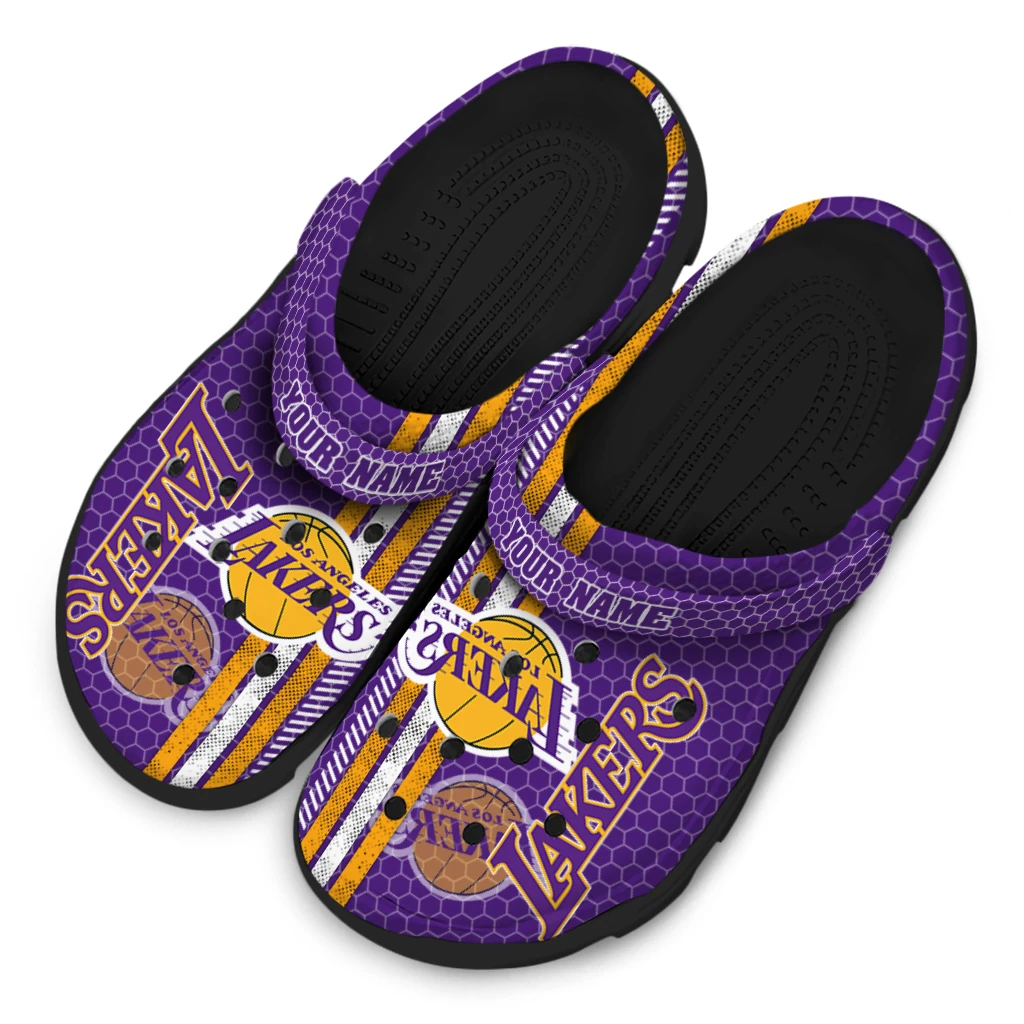 Customized Los Angeles Lakers Contrasting Stripes Clogs