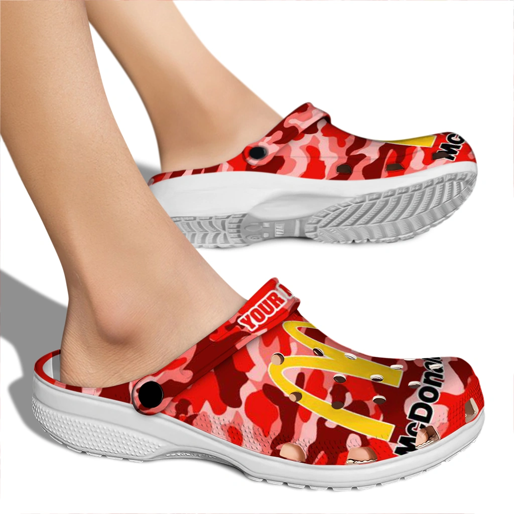 The Customized McDonald’s Arches Center Red Pink Clogs from Hey Clogs slips on in seconds and keeps pace with your day – from slow mornings at home to city strolls and weekend getaways. Thoughtful design meets playful style with cheerful colors and prints that pop, adding personality to every step while delivering easy, breezy comfort and lightweight support wherever you wander. Want a signature touch? Customize yours with a name or initials for a one-of-one pair.