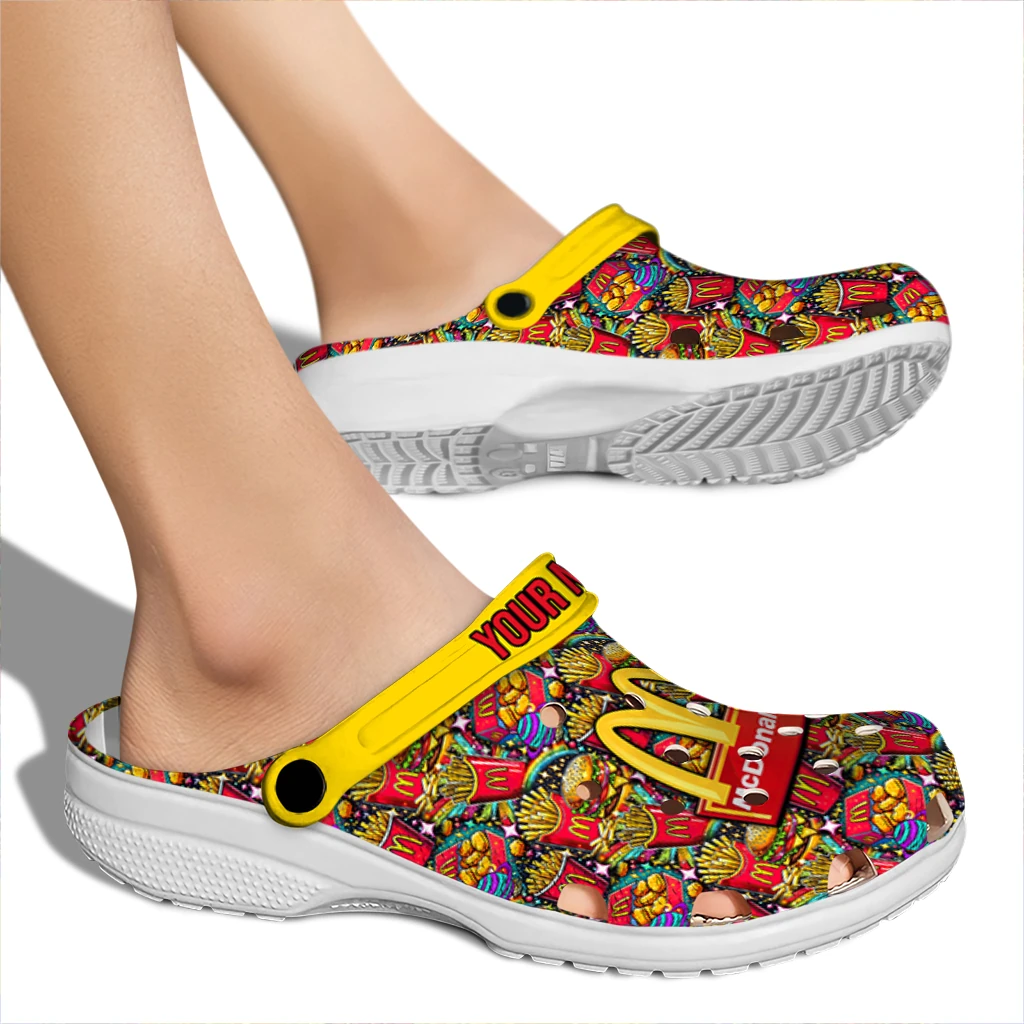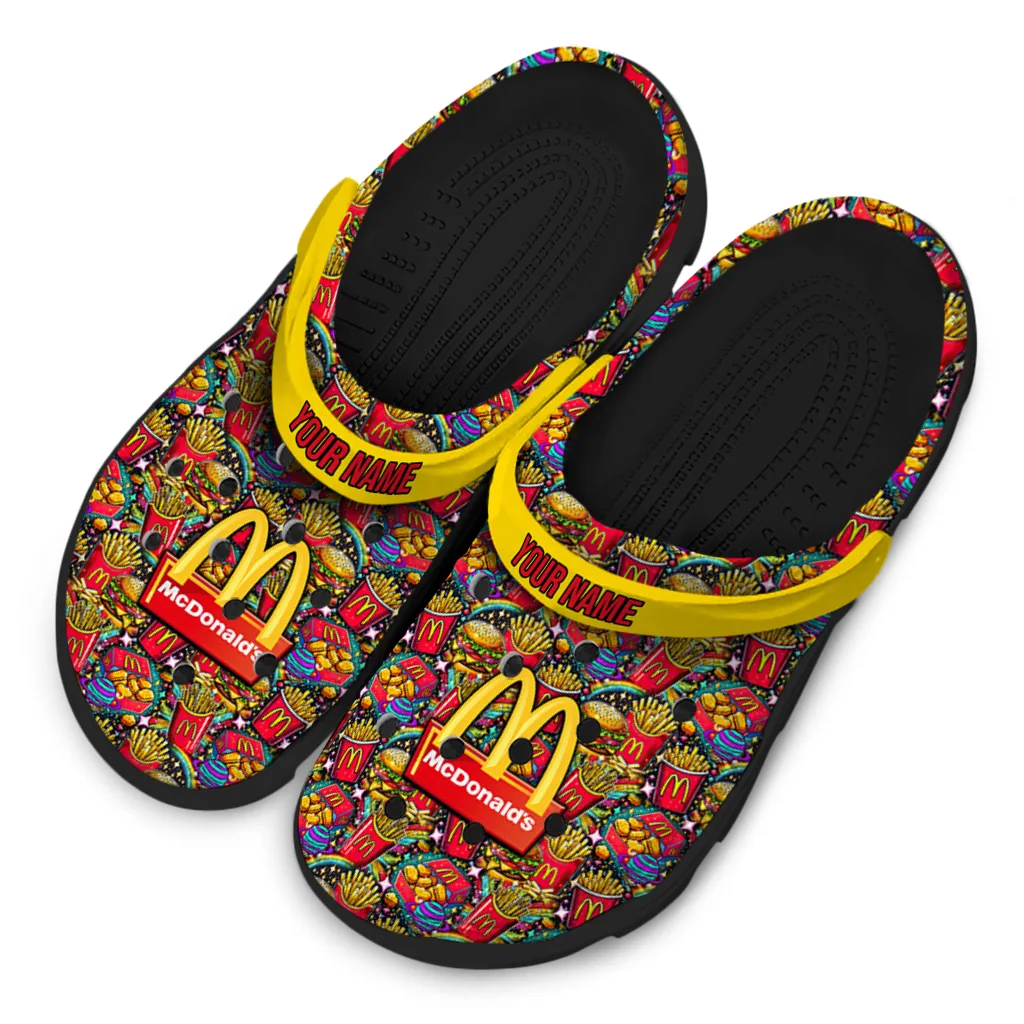 You’ll love it at first sight – and even more when it’s yours alone. Finish your clogs with a custom name or initials for a personal signature that stands out. Advanced UV printing keeps colors vivid without fading or peeling, so your look stays fresh from home lounging to errands, travel days, and lazy afternoons by the water. Easy to slip on and easy to love, the Customized McDonald’s Fries Burger Red Yellow Clogs brings together practicality, personality, and the playful spirit of Hey Clogs.