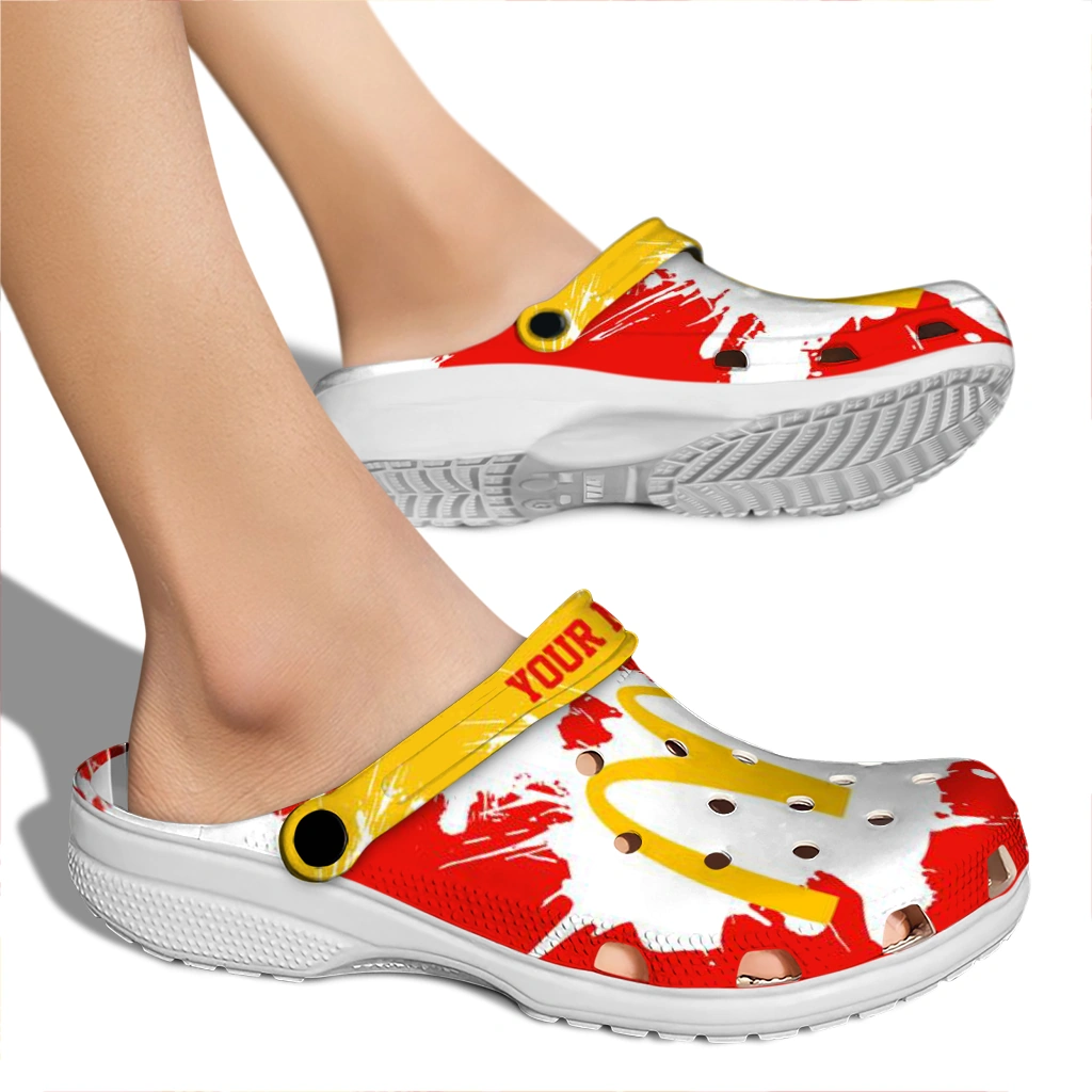 The Customized McDonald’s W Splatter Red Yellow Clogs from Hey Clogs slips on in seconds and keeps pace with your day – from slow mornings at home to city strolls and weekend getaways. Thoughtful design meets playful style with cheerful colors and prints that pop, adding personality to every step while delivering easy, breezy comfort and lightweight support wherever you wander. Want a signature touch? Customize yours with a name or initials for a one-of-one pair.