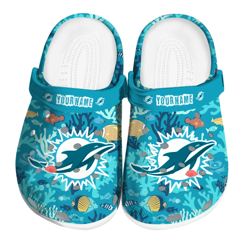 Customized Miami Dolphins Tropical Fish Ocean Clogs