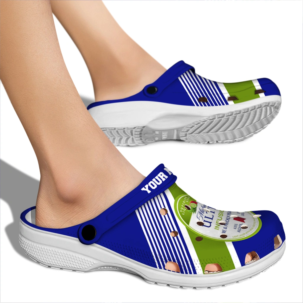 The Customized Michelob Ultra Infusions Emblem Blue Green Clogs from Hey Clogs slips on in seconds and keeps pace with your day – from slow mornings at home to city strolls and weekend getaways. Thoughtful design meets playful style with cheerful colors and prints that pop, adding personality to every step while delivering easy, breezy comfort and lightweight support wherever you wander. Want a signature touch? Customize yours with a name or initials for a one-of-one pair.