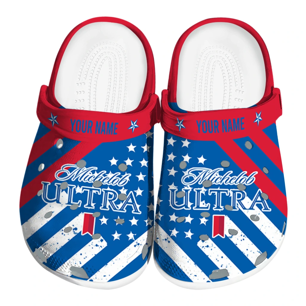 The Customized Michelob Ultra Pattern Red Blue Clogs from Hey Clogs slips on in seconds and keeps pace with your day – from slow mornings at home to city strolls and weekend getaways. Thoughtful design meets playful style with cheerful colors and prints that pop, adding personality to every step while delivering easy, breezy comfort and lightweight support wherever you wander. Want a signature touch? Customize yours with a name or initials for a one-of-one pair.