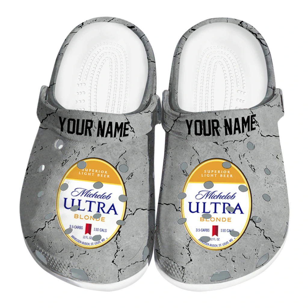 The Customized Michelob Ultra Script Gray Yellow Clogs from Hey Clogs slips on in seconds and keeps pace with your day – from slow mornings at home to city strolls and weekend getaways. Thoughtful design meets playful style with cheerful colors and prints that pop, adding personality to every step while delivering easy, breezy comfort and lightweight support wherever you wander. Want a signature touch? Customize yours with a name or initials for a one-of-one pair.