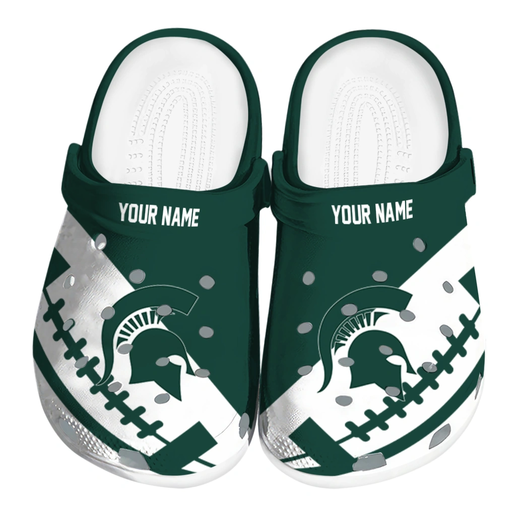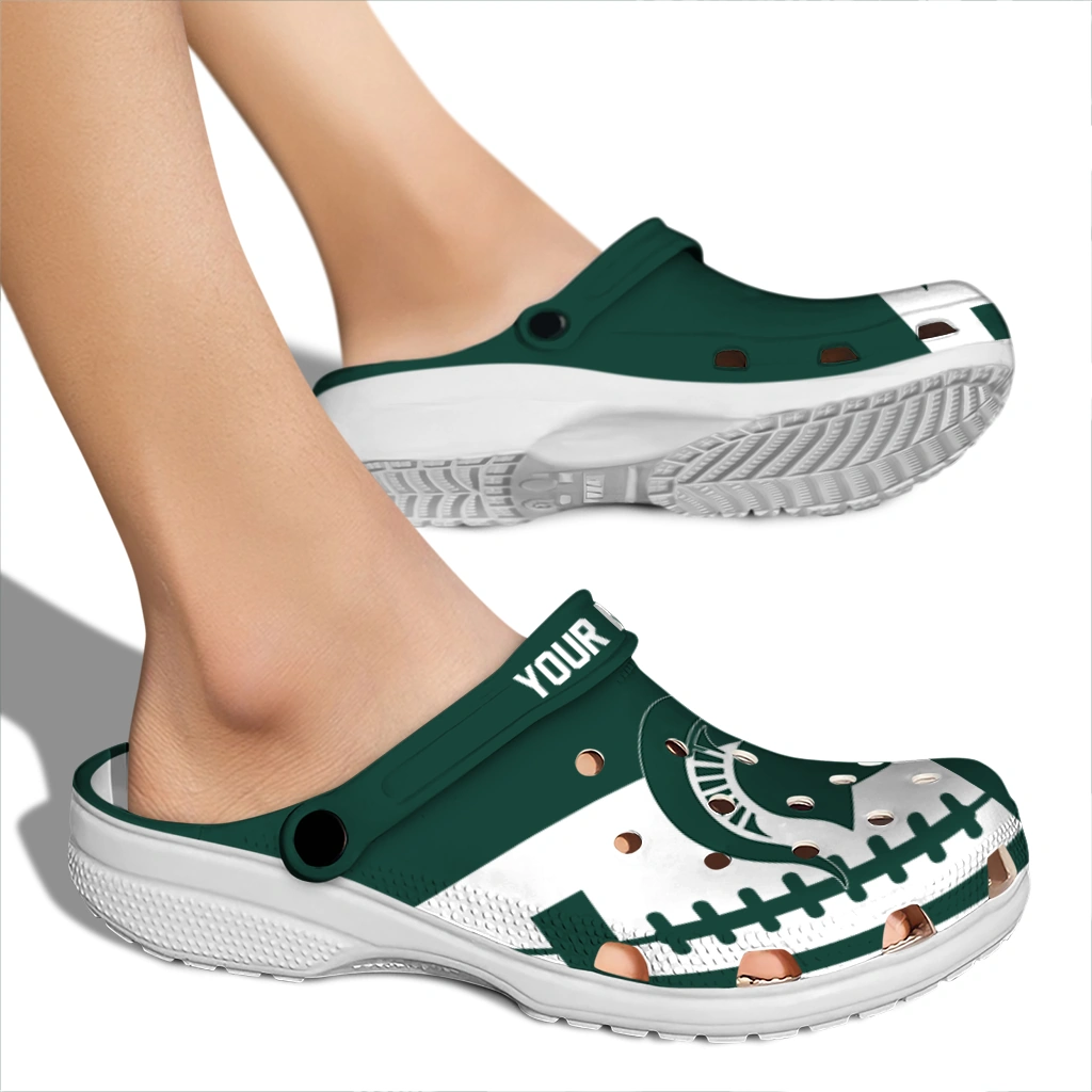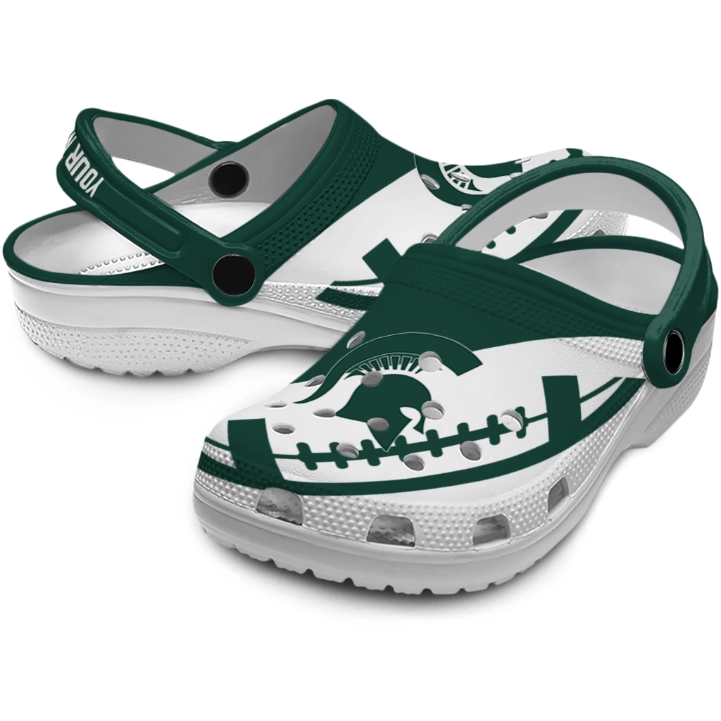 Your Clogs, Your Vibe, Your Name! Customized Michigan State Spartans Football Motif Clogs from Hey Clogs lets you take sport team-inspired style to a personal level! Featuring the bold colors you love, these featherlight clogs deliver unbeatable, all-day comfort. What a great way to make them truly yours: add your name to the heel strap! Perfect for gifting or treating yourself, these personalized clogs are a fun, spirited way to step out in comfort.