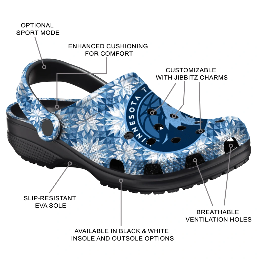 Customized Minnesota Timberwolves Snowflake Mosaic Clogs