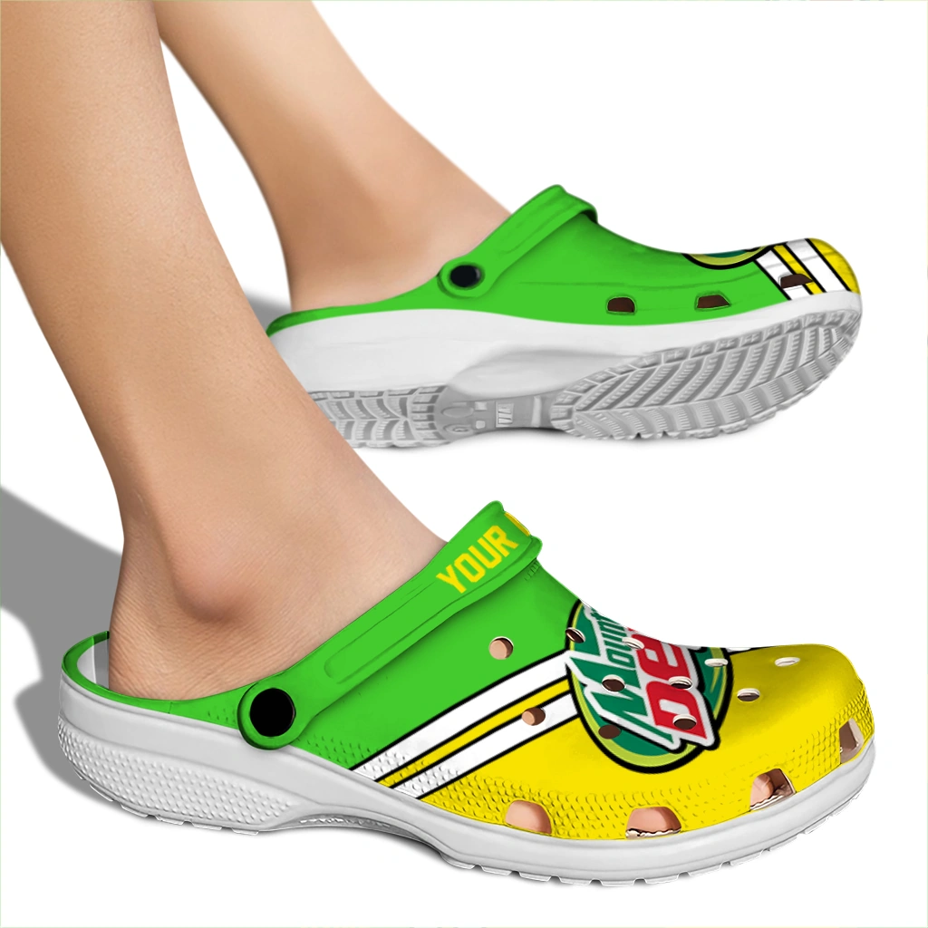 The Customized Mountain Dew Angle Green Yellow Clogs from Hey Clogs slips on in seconds and keeps pace with your day – from slow mornings at home to city strolls and weekend getaways. Thoughtful design meets playful style with cheerful colors and prints that pop, adding personality to every step while delivering easy, breezy comfort and lightweight support wherever you wander. Want a signature touch? Customize yours with a name or initials for a one-of-one pair.