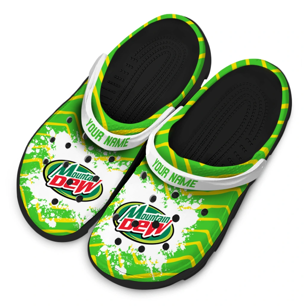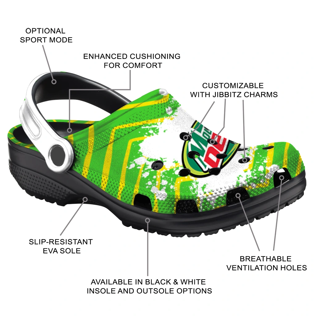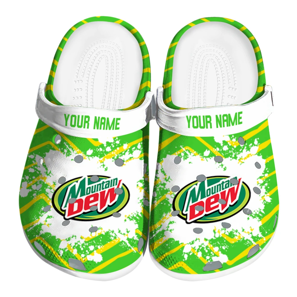 Customized Mountain Dew Brush Strokes Green Yellow Clogs