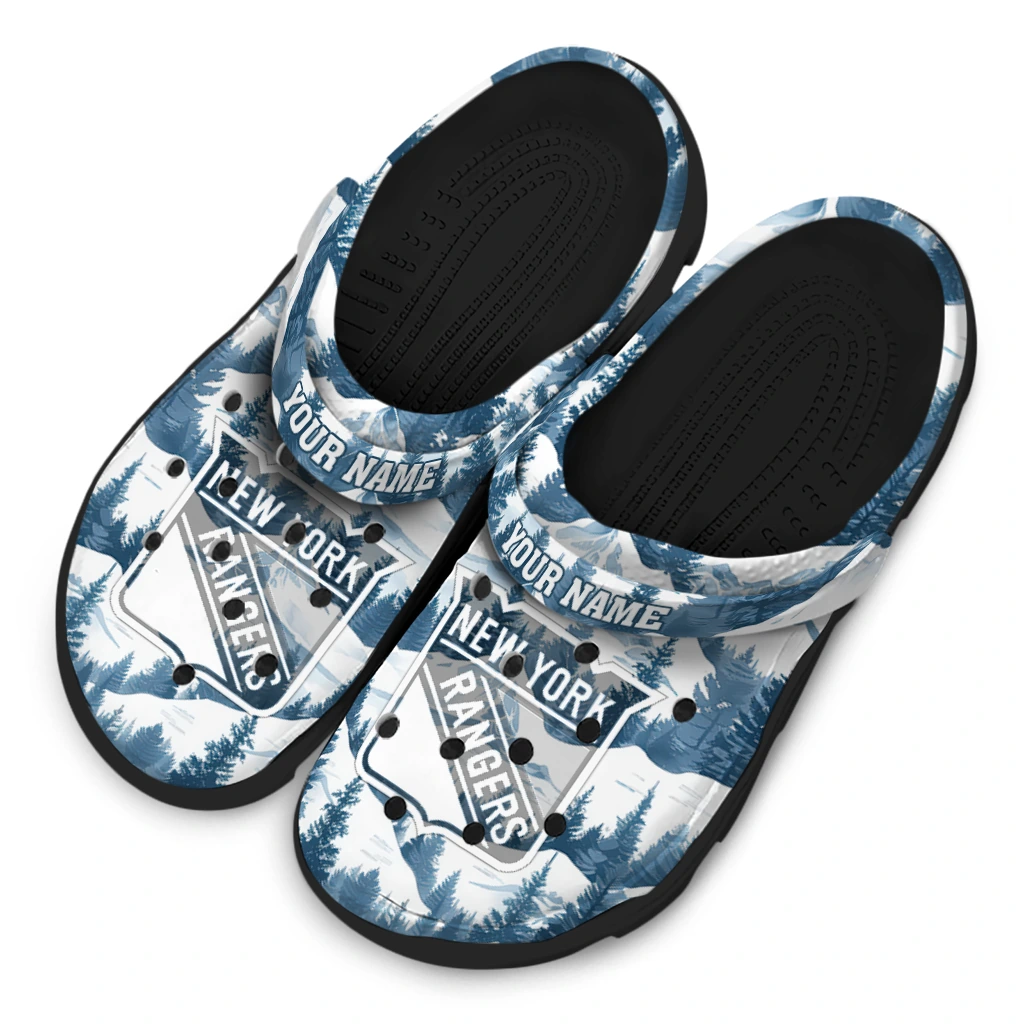 Your Clogs, Your Vibe, Your Name! Customized New York Rangers Snowy Mountains Clogs from Hey Clogs lets you take sport team-inspired style to a personal level! Featuring the bold colors you love, these featherlight clogs deliver unbeatable, all-day comfort. What a great way to make them truly yours: add your name to the heel strap! Perfect for gifting or treating yourself, these personalized clogs are a fun, spirited way to step out in comfort.
