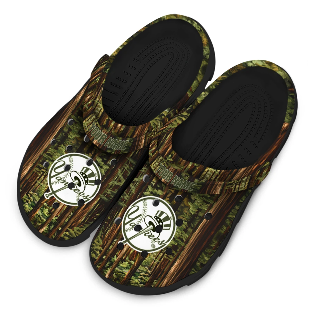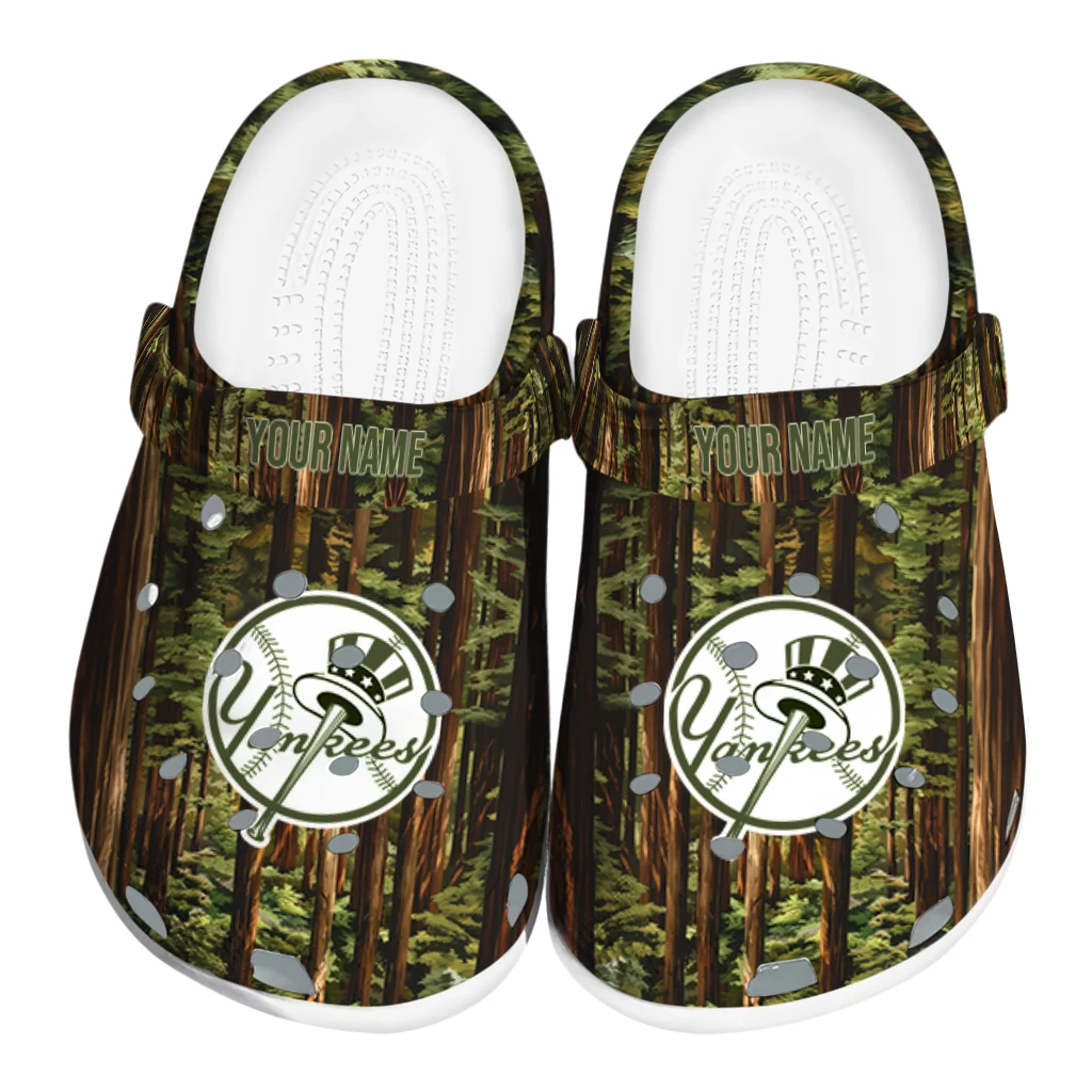 Your Clogs, Your Vibe, Your Name! Customized New York Yankees Woods Forest Designs Clogs from Hey Clogs lets you take sport team-inspired style to a personal level! Featuring the bold colors you love, these featherlight clogs deliver unbeatable, all-day comfort. What a great way to make them truly yours: add your name to the heel strap! Perfect for gifting or treating yourself, these personalized clogs are a fun, spirited way to step out in comfort.